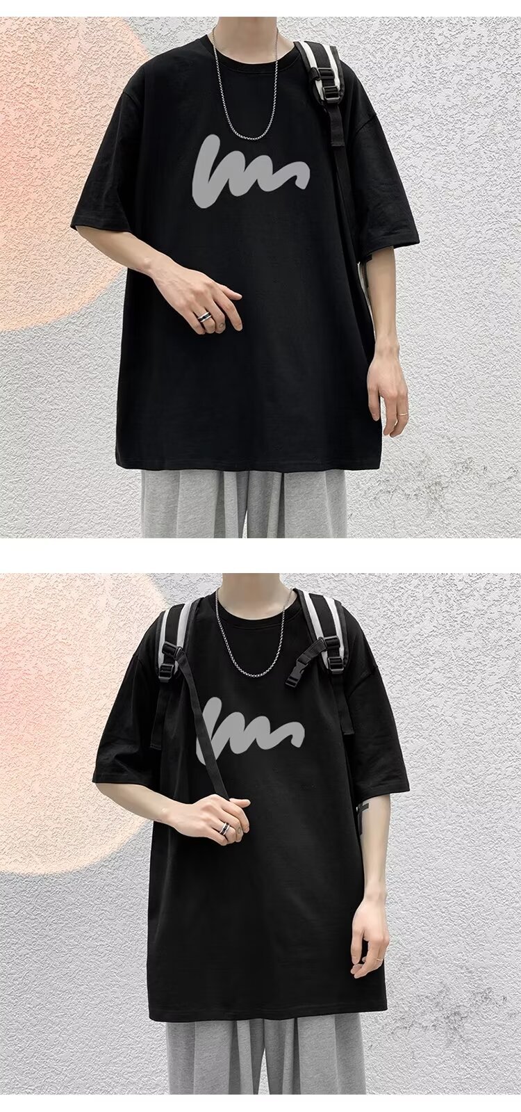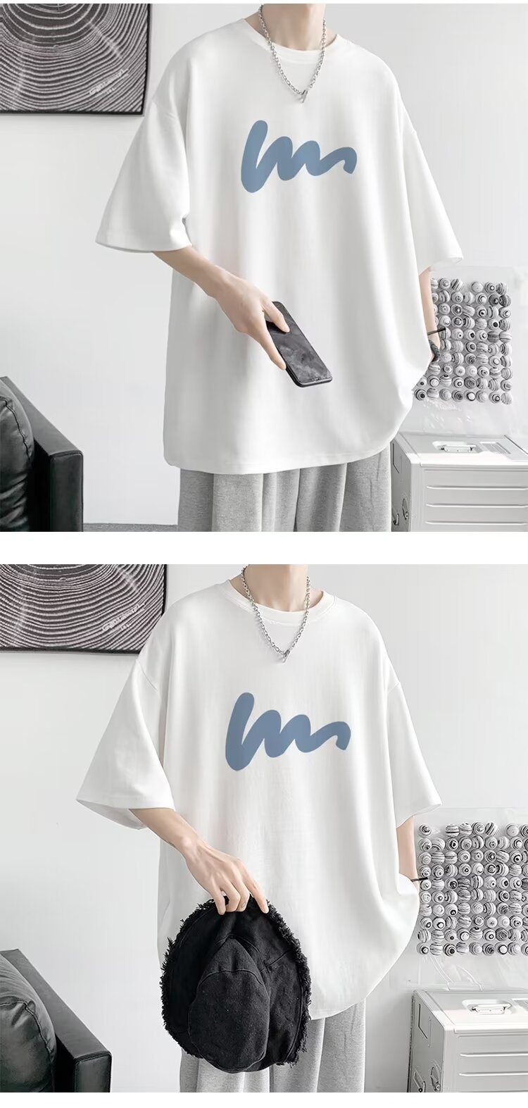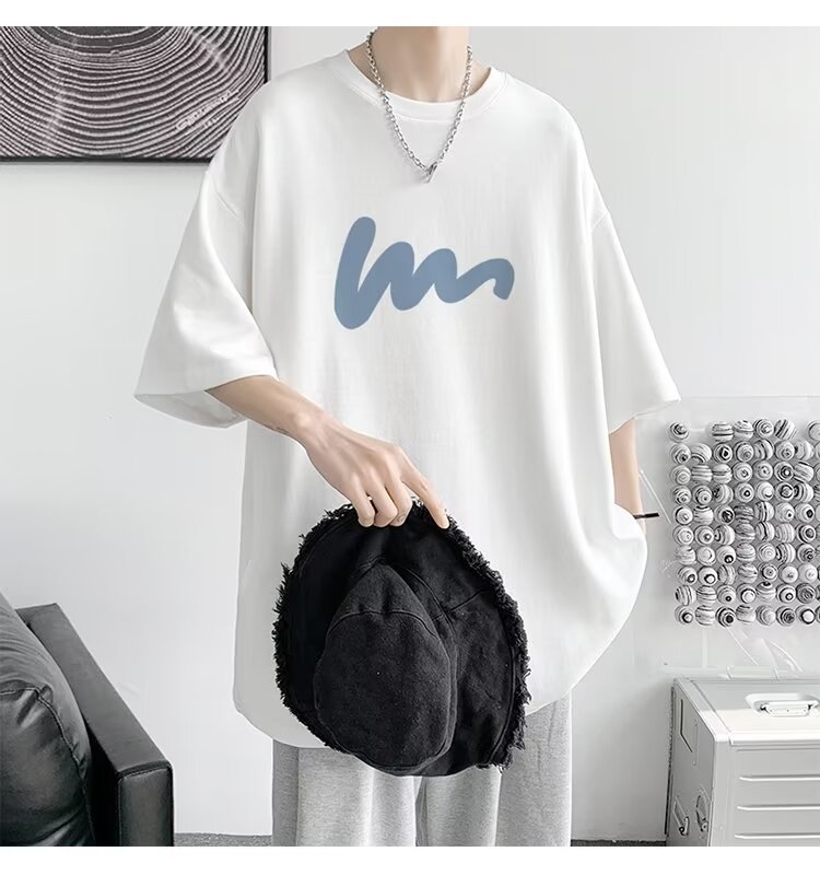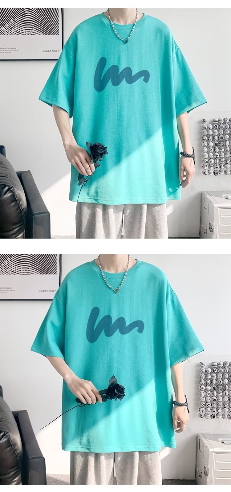 트렌디 한 브랜드 티셔츠 남자 2024 년 새 반팔 여름 최고 학생 느슨한 반소매 티셔츠 반소매 베이스 셔츠스토어 가기