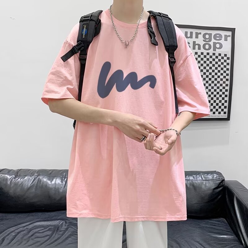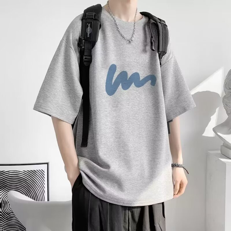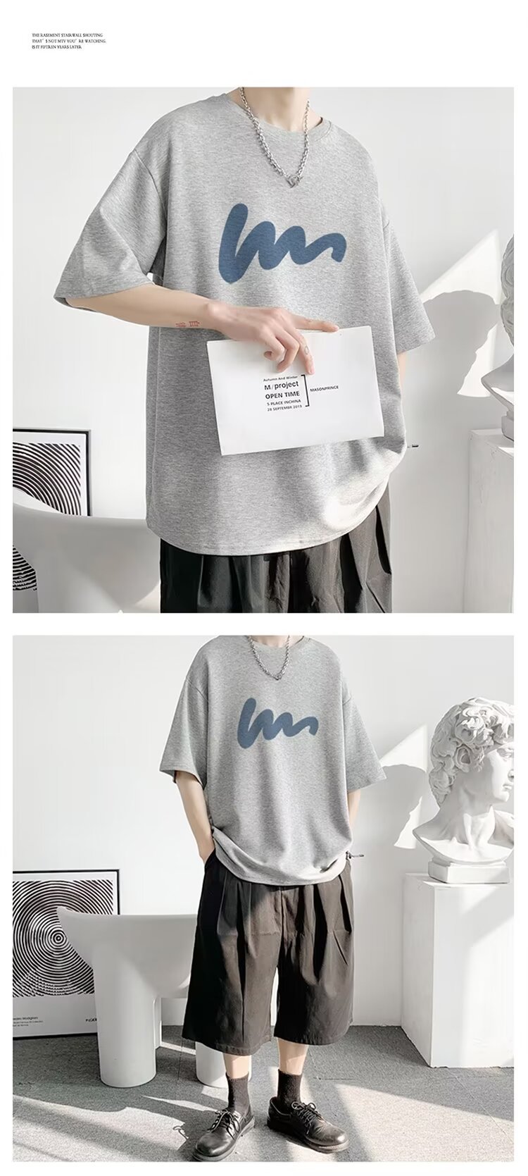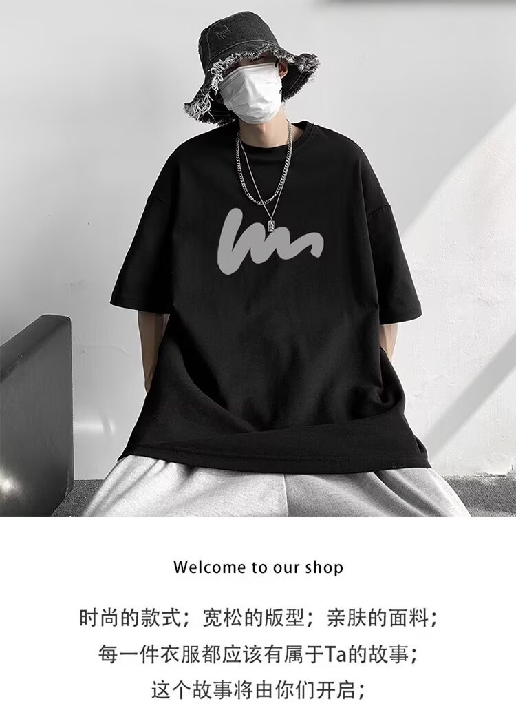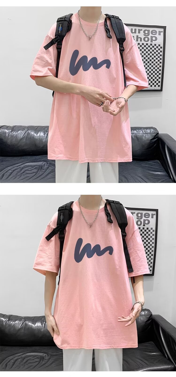 트렌디 한 브랜드 티셔츠 남자 2024 년 새 반팔 여름 최고 학생 느슨한 반소매 티셔츠 반소매 베이스 셔츠스토어 가기