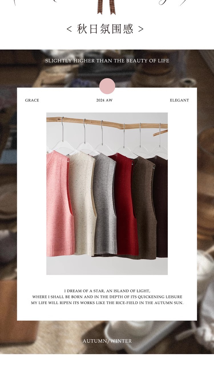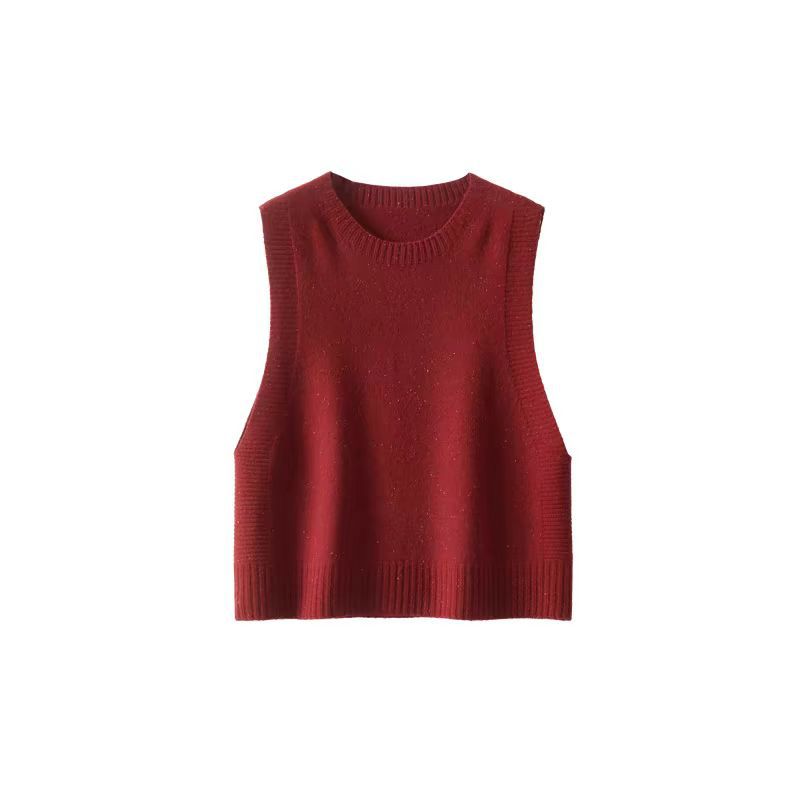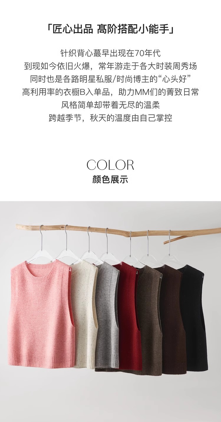 2025 가을 겨울 신제품 라운드 넥 이음매없는 원피스 순수 1OO% 울 컬러 도트 원사 니트 조끼 여성용스토어 가기