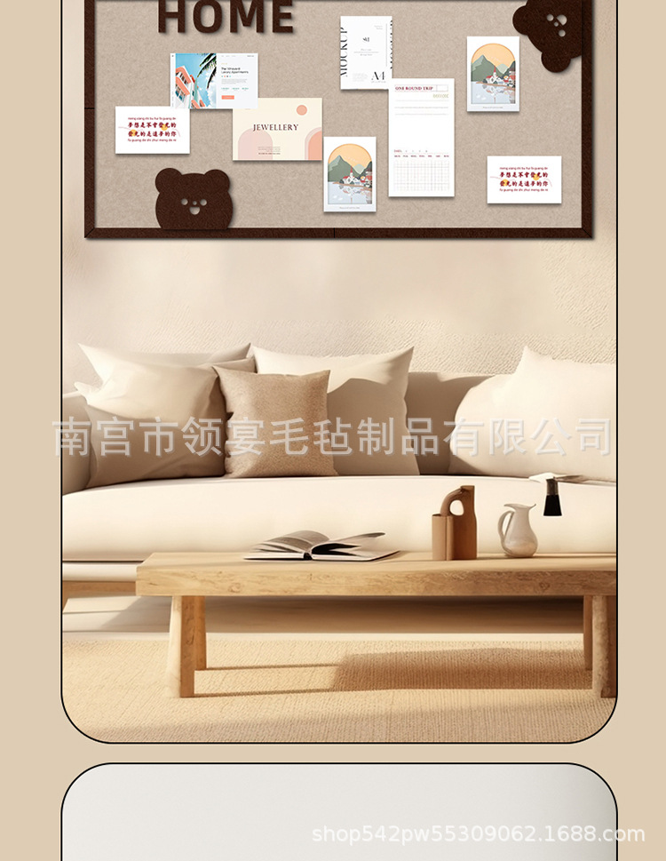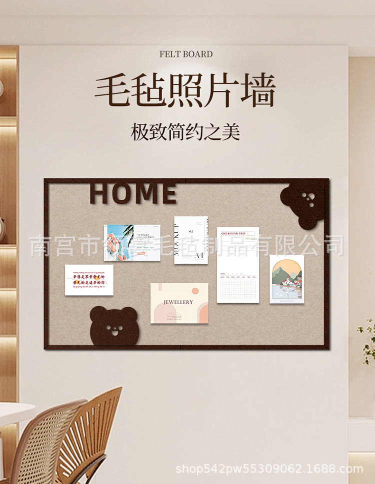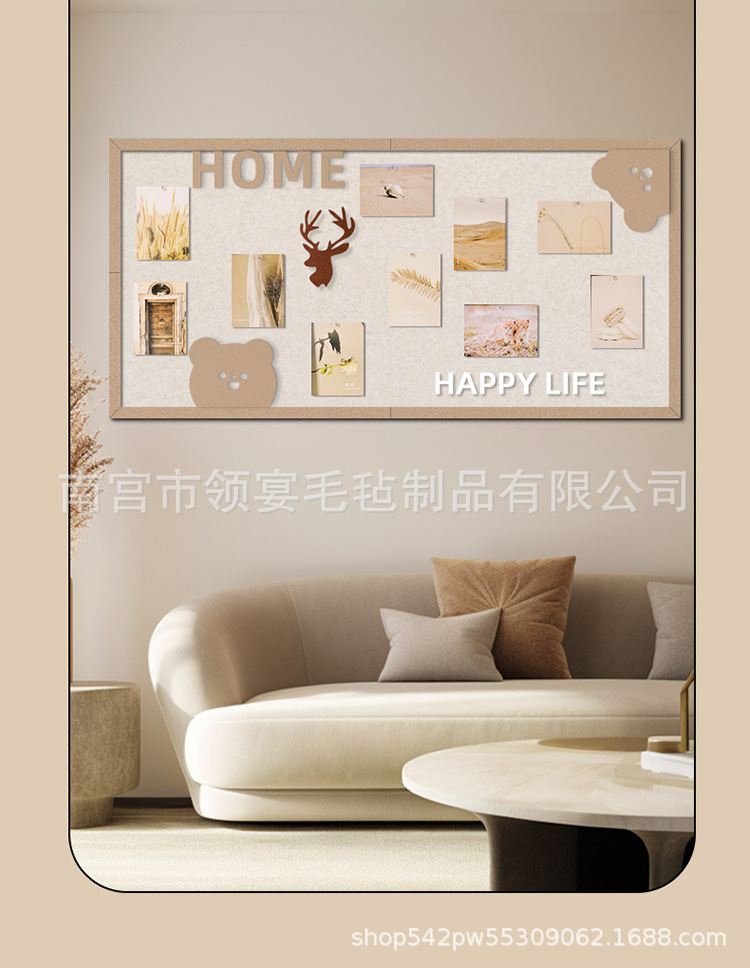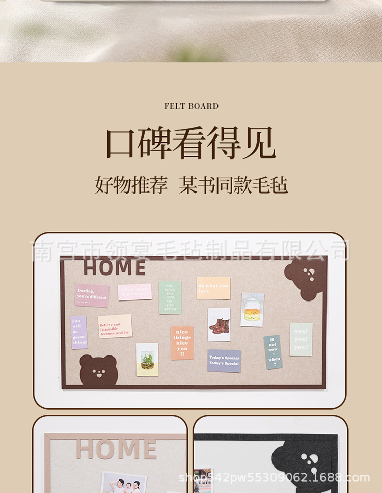 해피 베어 펠트 보드 사진 벽 코르크 보드 벽 스티커 테마 벽 자체 접착 배경 벽 침실 입구 메시지 보드스토어 가기