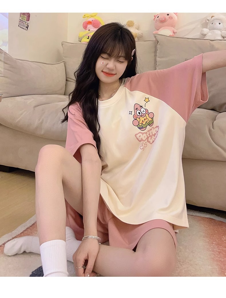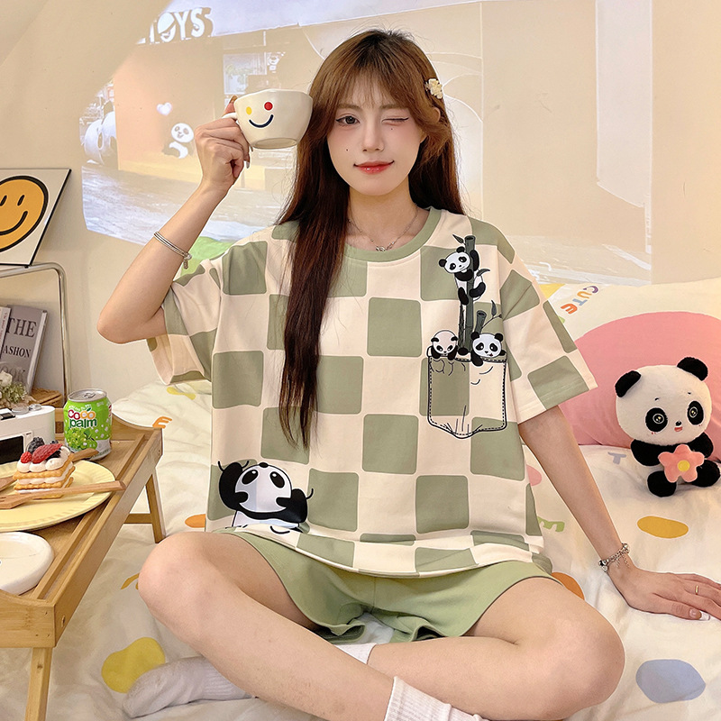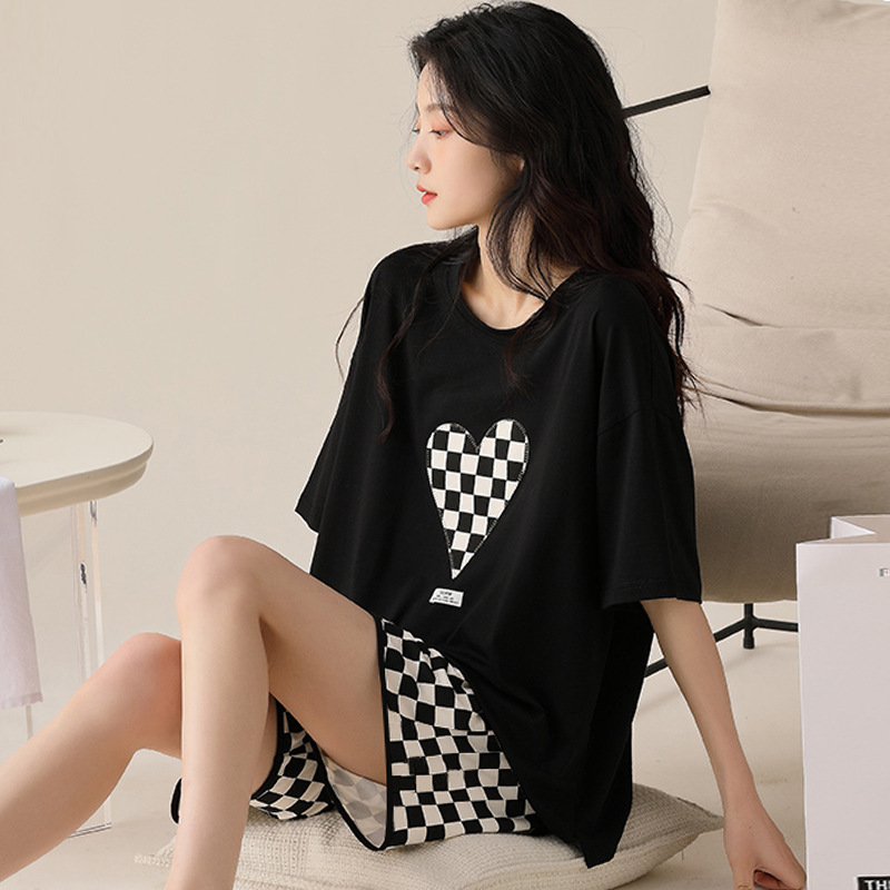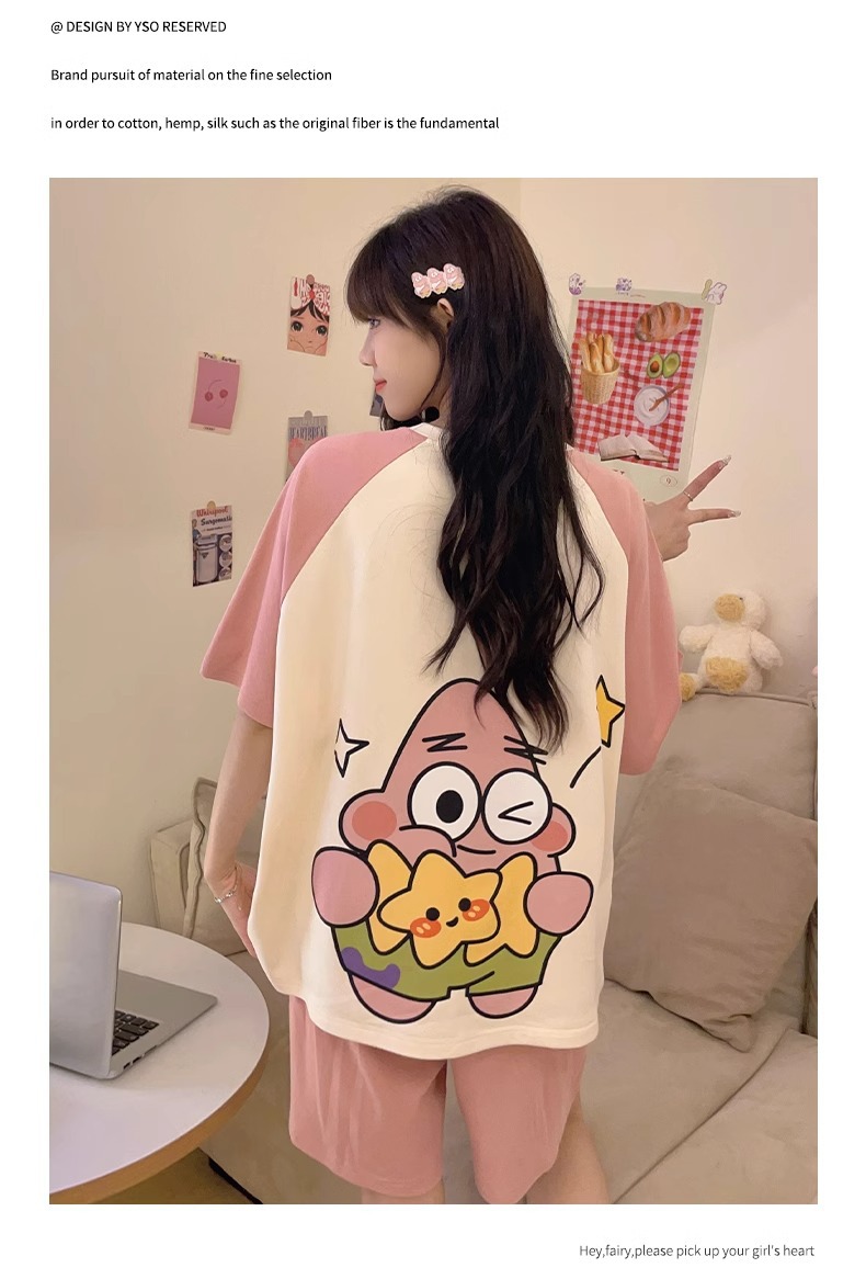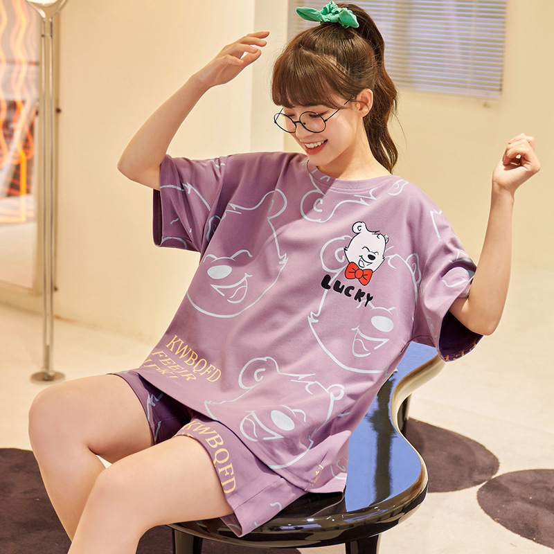 여름 잠옷 소녀의 귀여운 반팔 반바지 얇은 여름 여성의 달콤한 캐주얼 홈 의류 세트스토어 가기