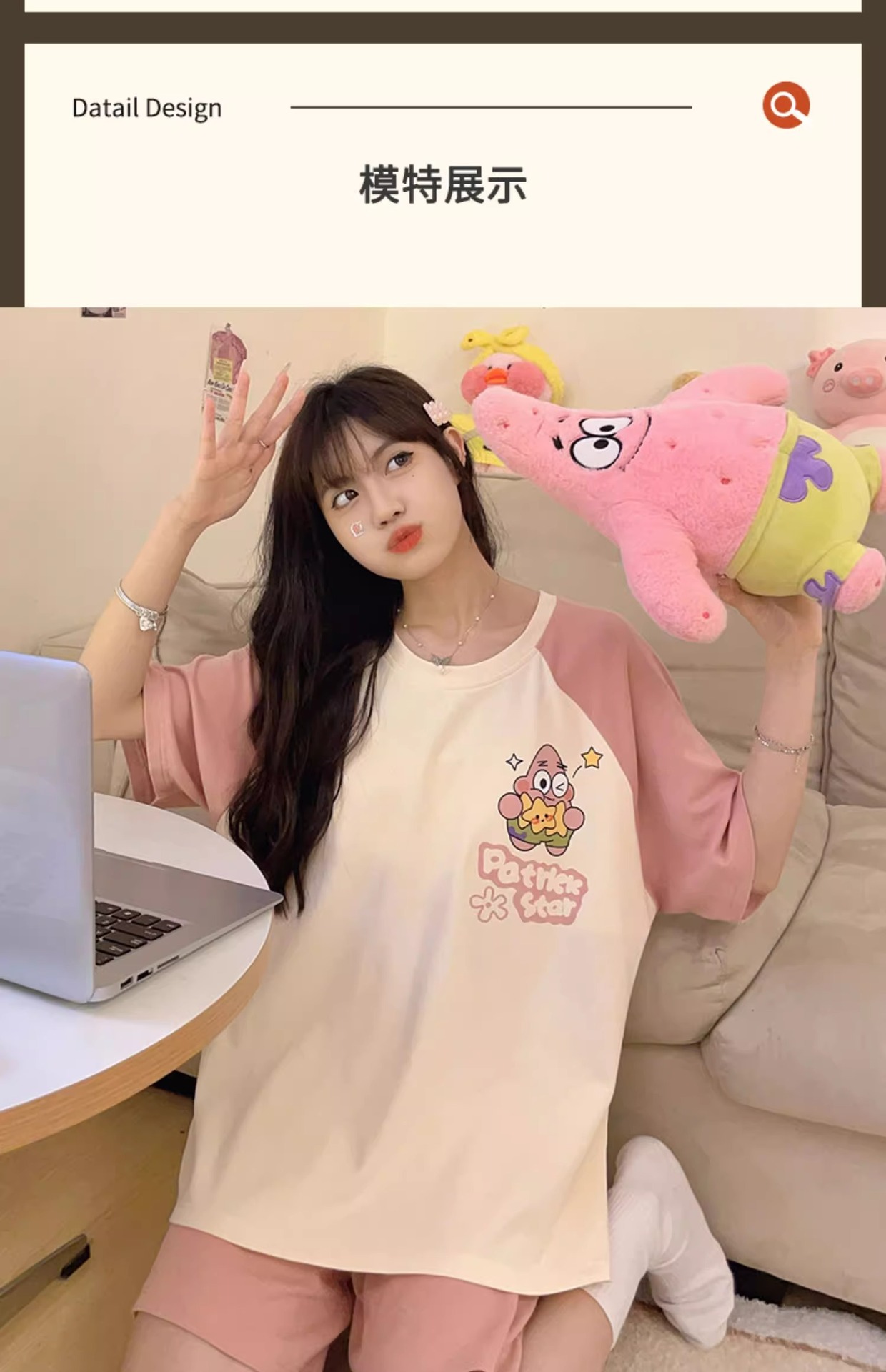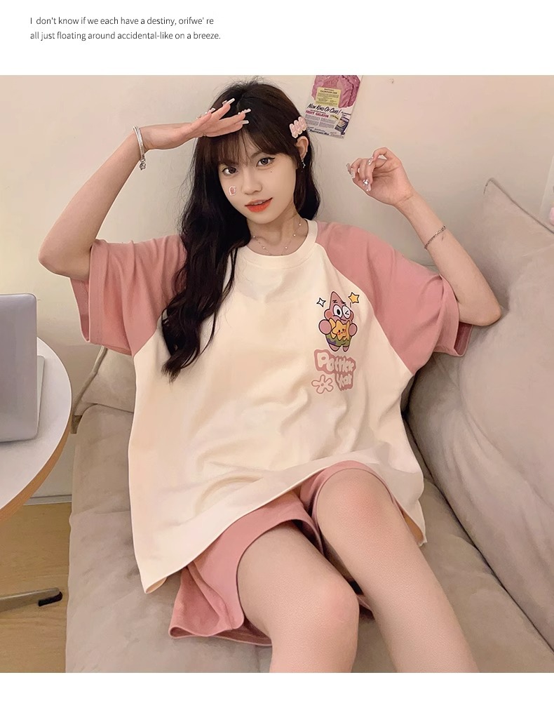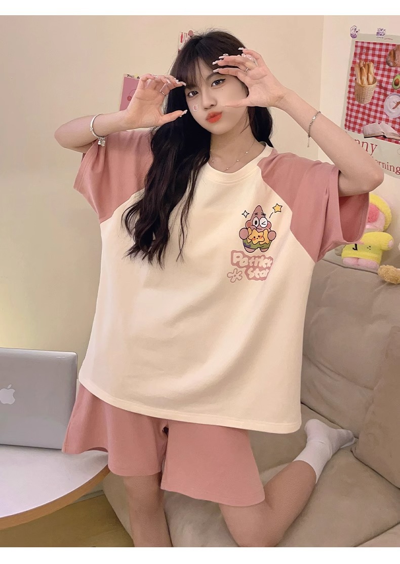 여름 잠옷 소녀의 귀여운 반팔 반바지 얇은 여름 여성의 달콤한 캐주얼 홈 의류 세트스토어 가기