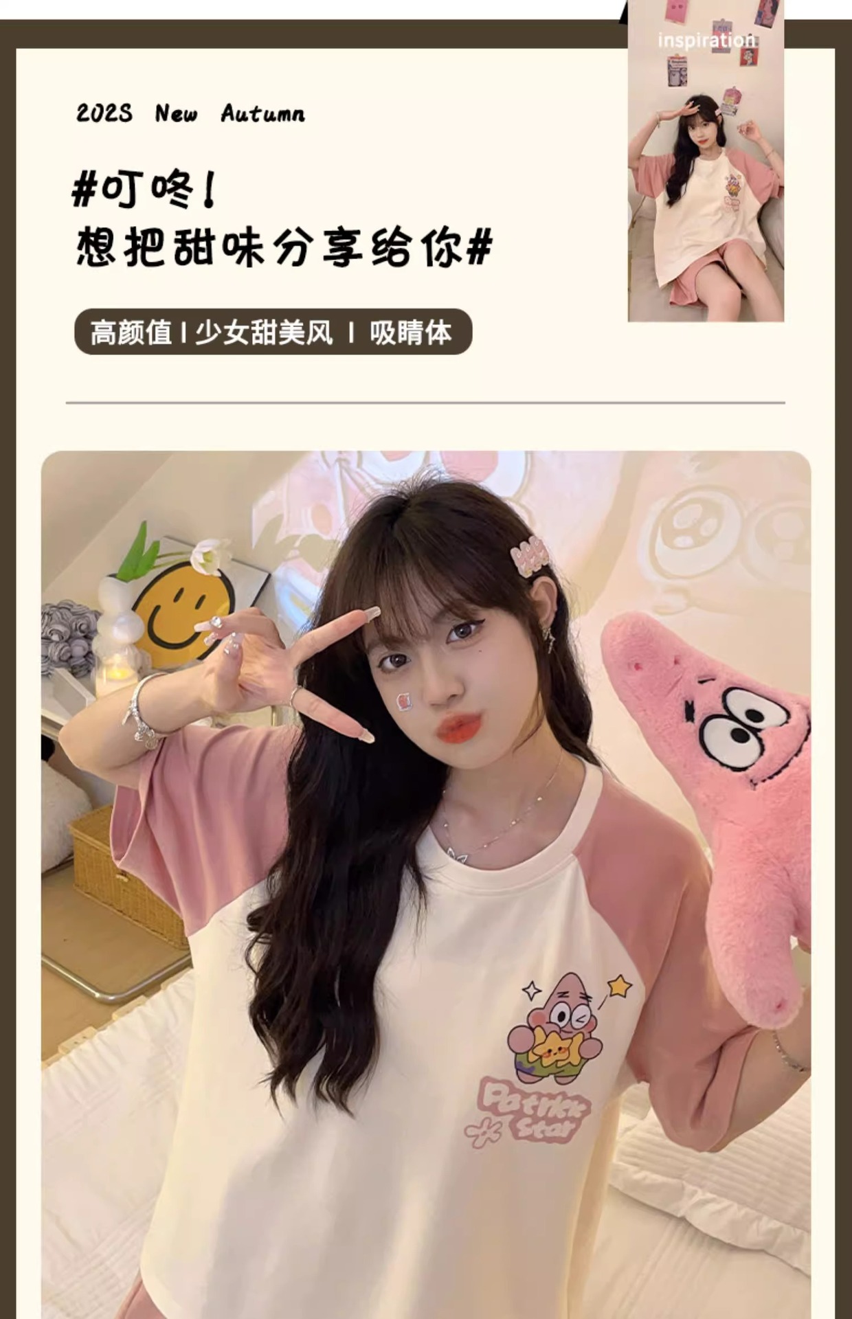 여름 잠옷 소녀의 귀여운 반팔 반바지 얇은 여름 여성의 달콤한 캐주얼 홈 의류 세트