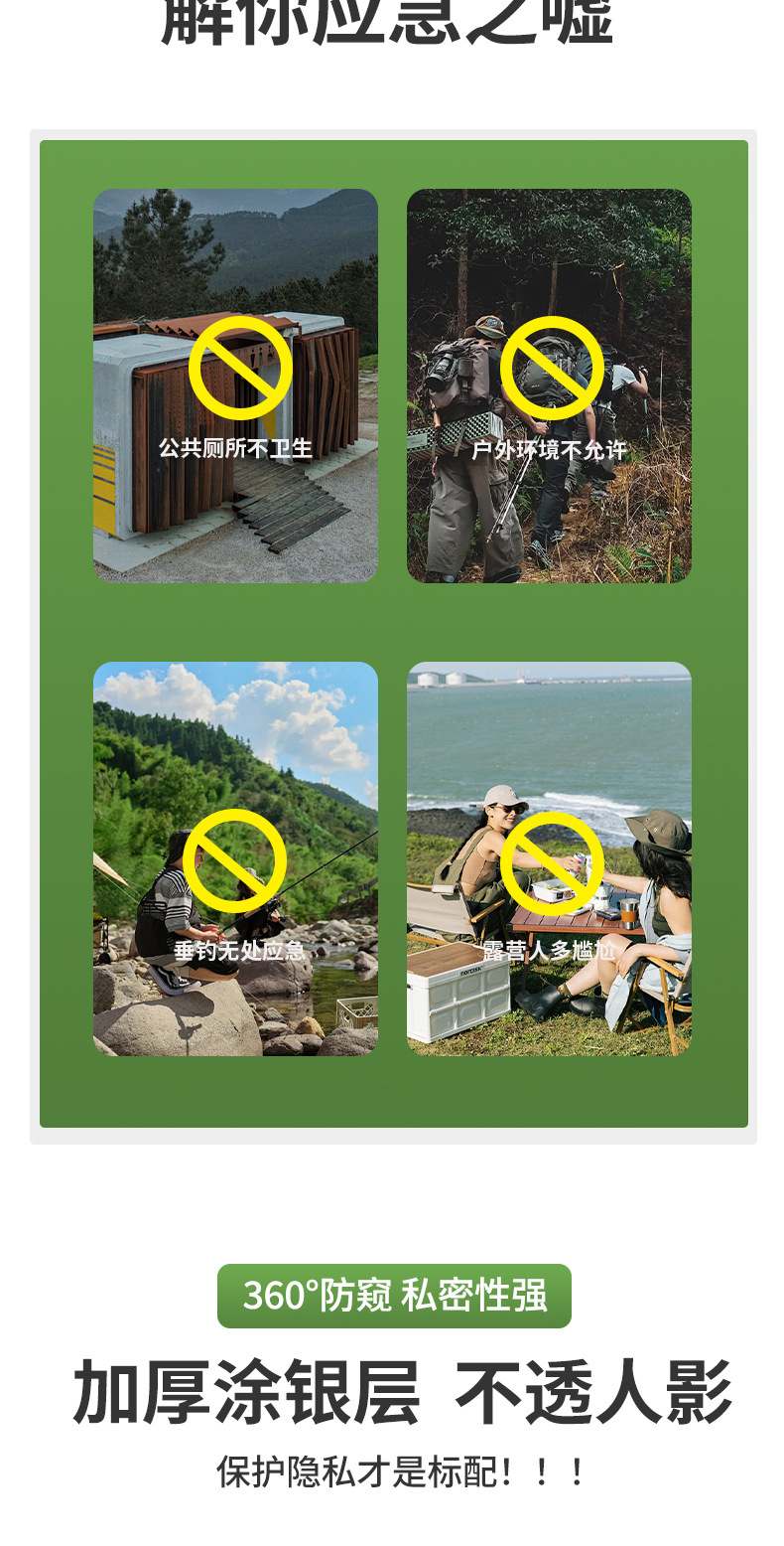 帐篷170t涤纶涂银布,4个地丁4个风绳,1个帐篷收纳包,帐内2个窗户,顶窗+后上窗,1根晾衣绳,一个收纳袋