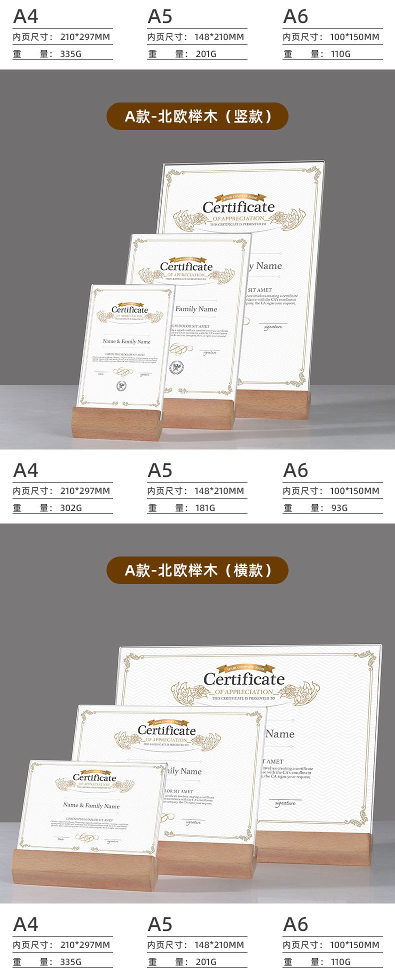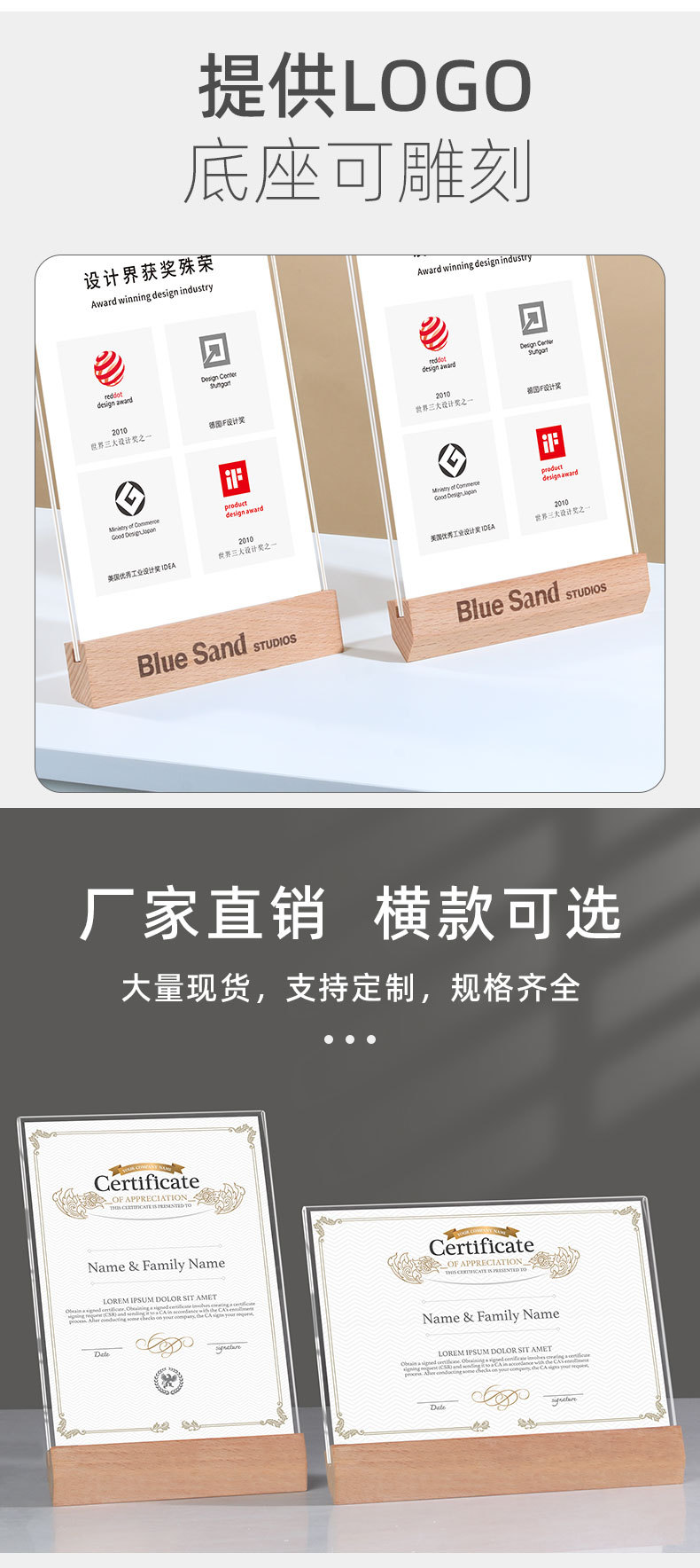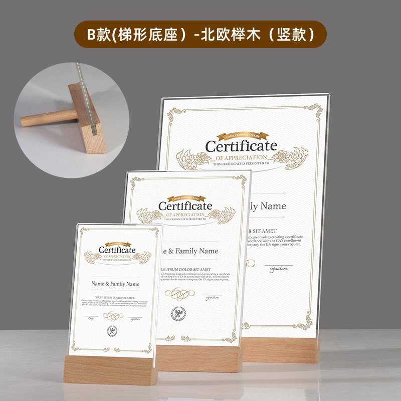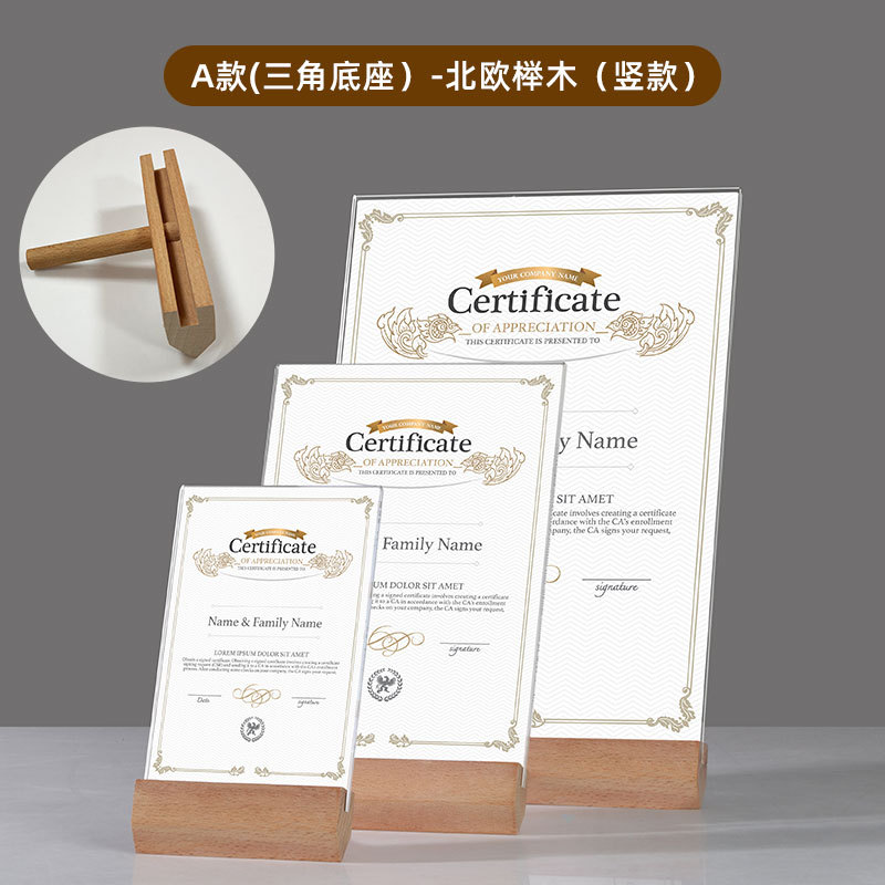 원목 스탠드 인증서 전시대 액자 아크릴 사업자 등록증 A4 직원 명예상 인증서 전시 프레임