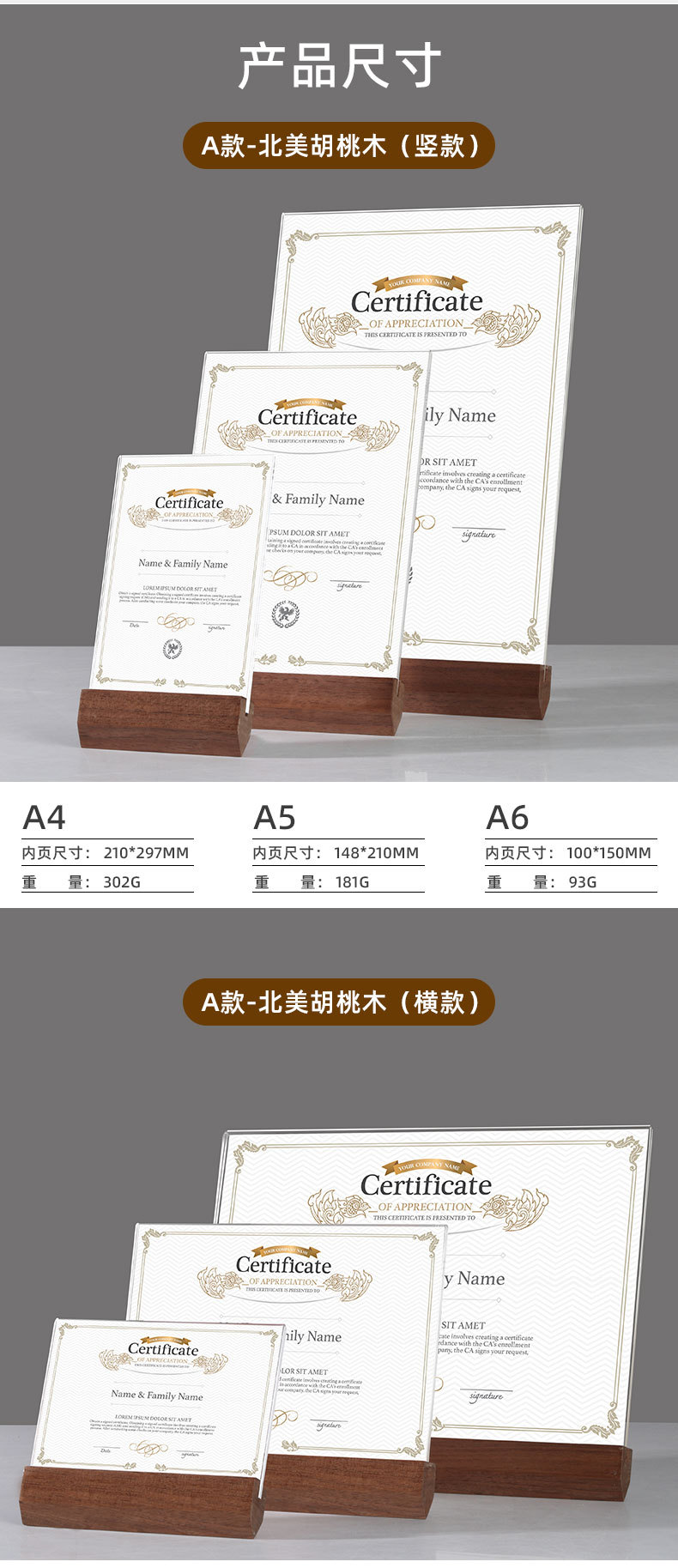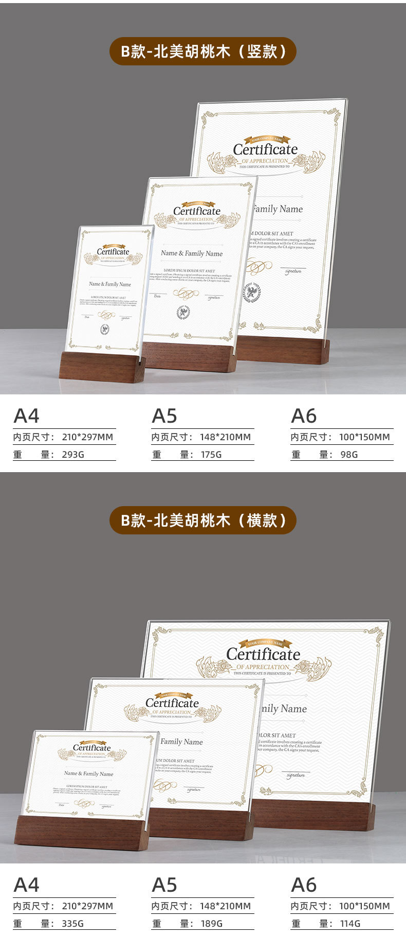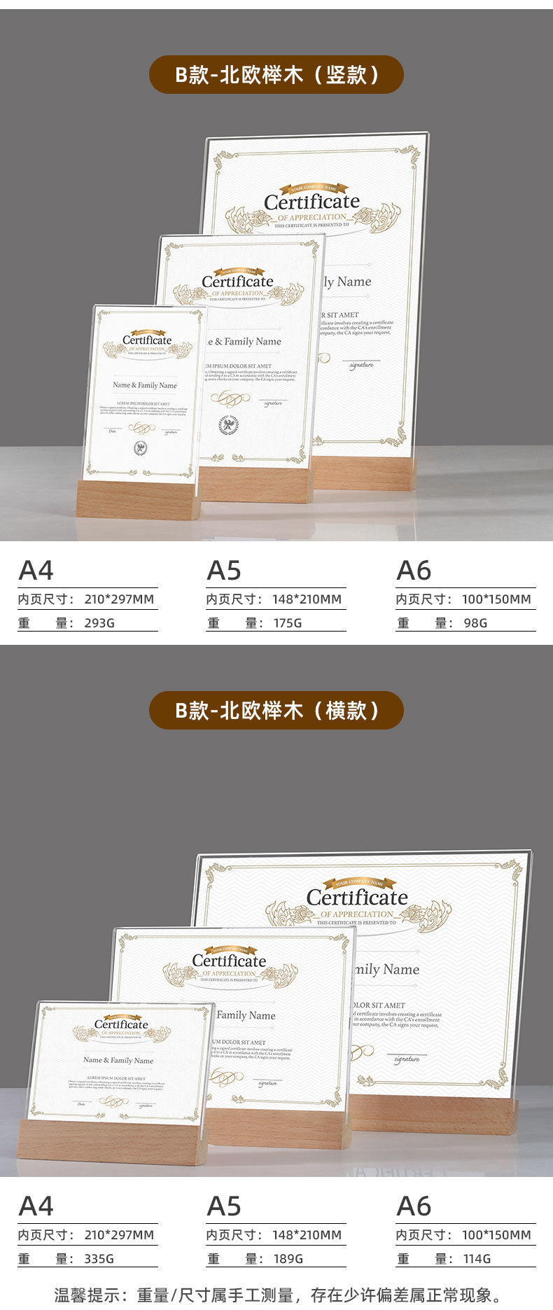 원목 스탠드 인증서 전시대 액자 아크릴 사업자 등록증 A4 직원 명예상 인증서 전시 프레임