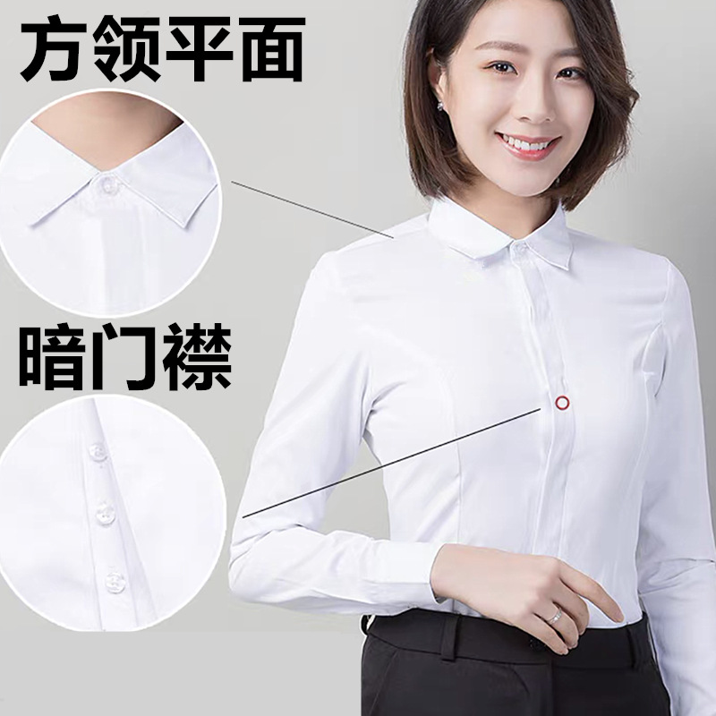 • 여성용 화이트 트윌 프론트 칼라-긴 소매 은폐 된 플래켓