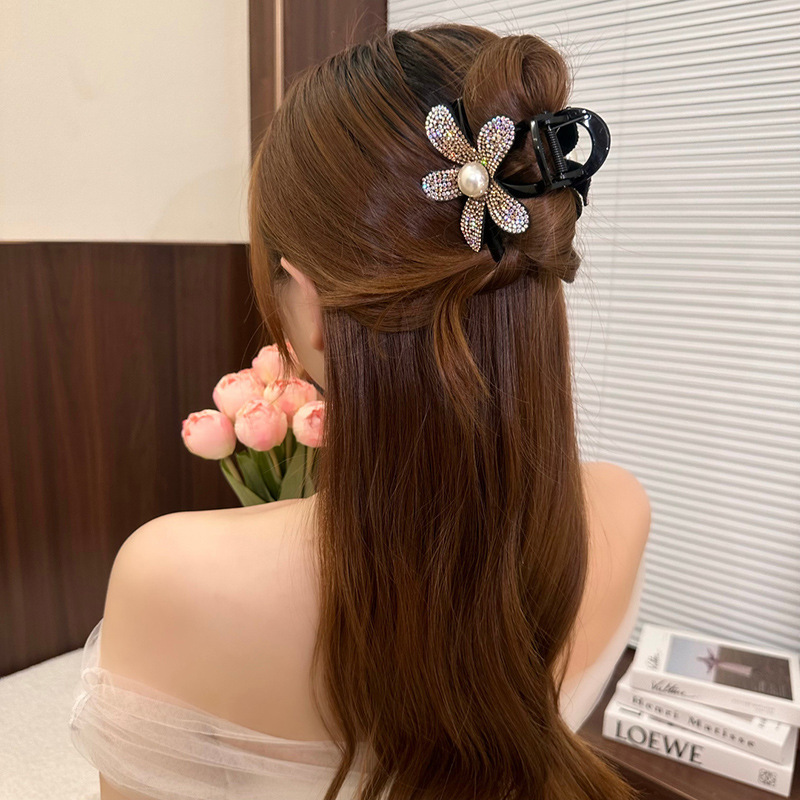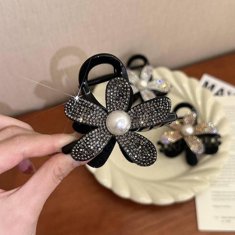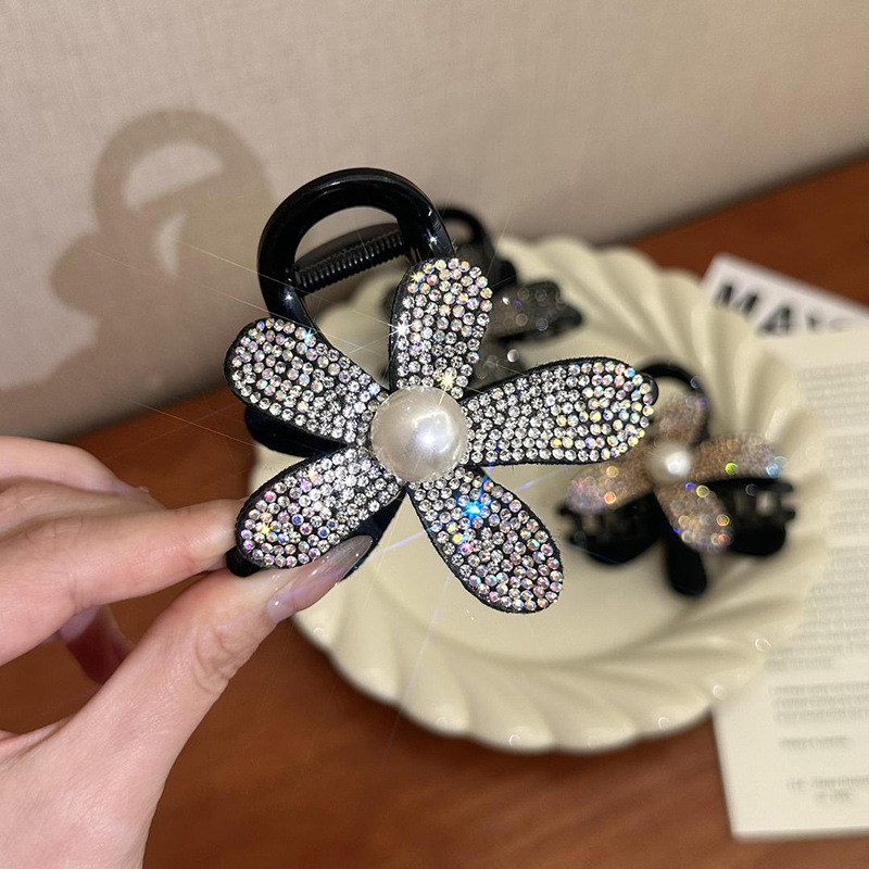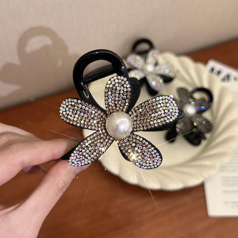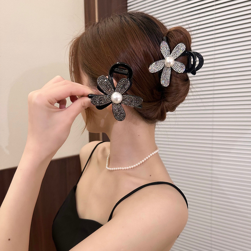 프랑스 스타일 샤넬 스타일 라인스톤 해바라기 그랩 클립 2024 새로운 고급 감각 헤어핀 상어 클립 헤어핀 클립 헤어 액세서리