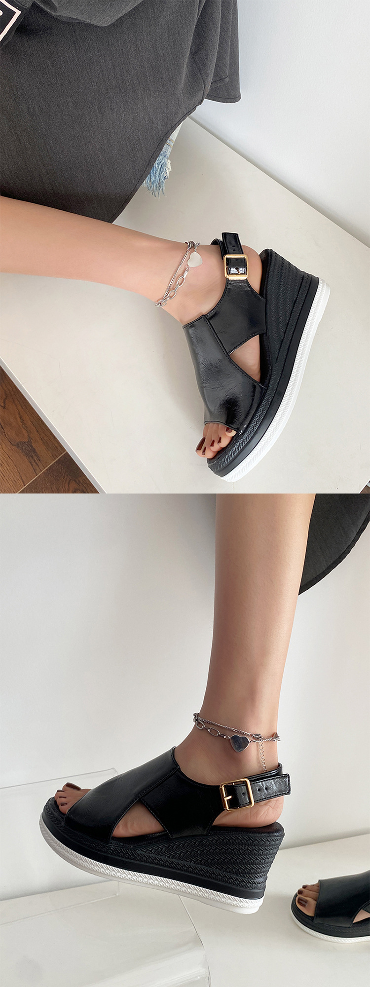 대외 무역 국경 캐주얼 샌들 여성의 2024 여름 유럽과 미국 패션 플러스 사이즈 한 캐릭터 플랫폼 웨지 슈즈스토어 가기