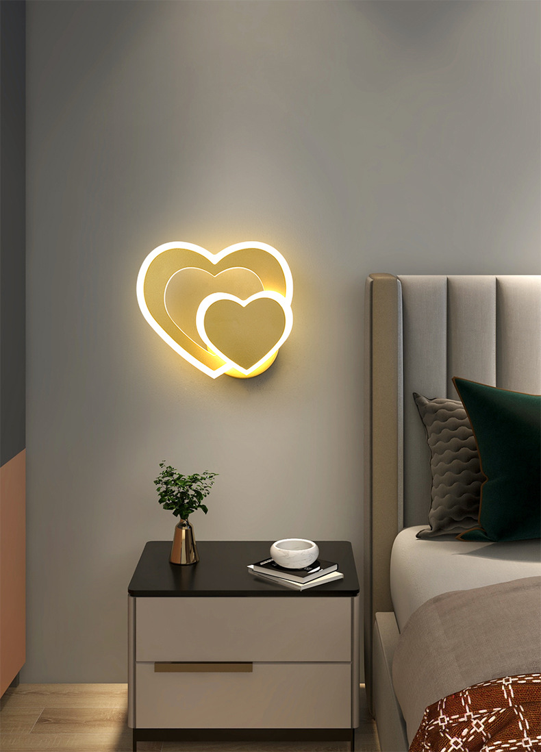 하트 모양의 벽 램프 침실 머리맡 램프 소녀 인터넷 연예인 따뜻한 계단 발코니 통로 미니멀리스트 크리 에이 티브 거실 TV 배경스토어 가기