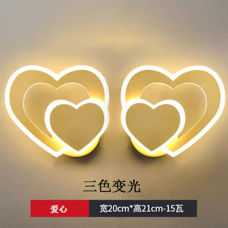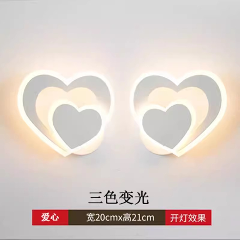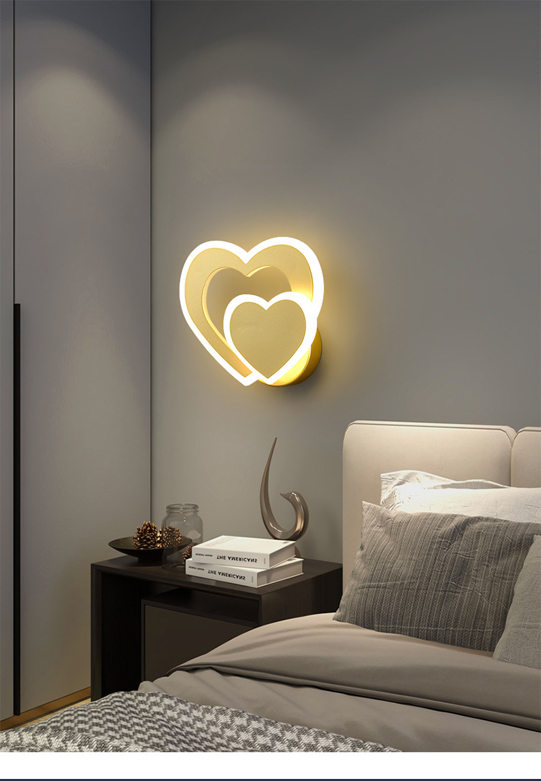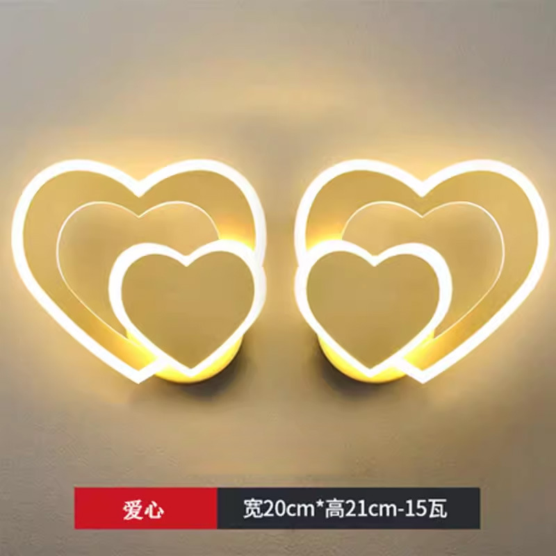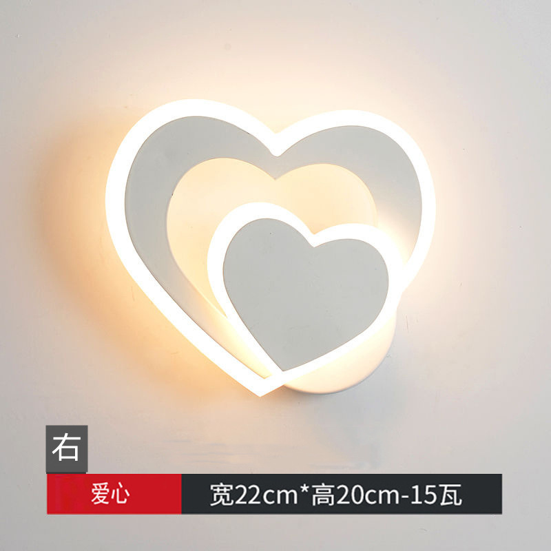 하트 모양의 벽 램프 침실 머리맡 램프 소녀 인터넷 연예인 따뜻한 계단 발코니 통로 미니멀리스트 크리 에이 티브 거실 TV 배경