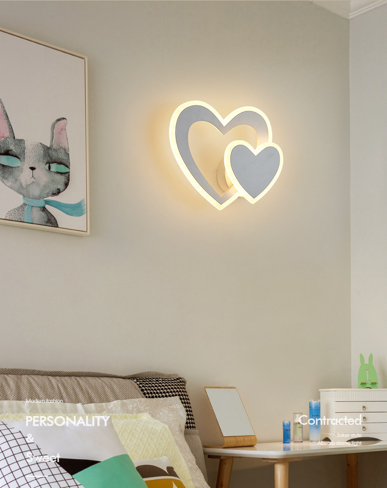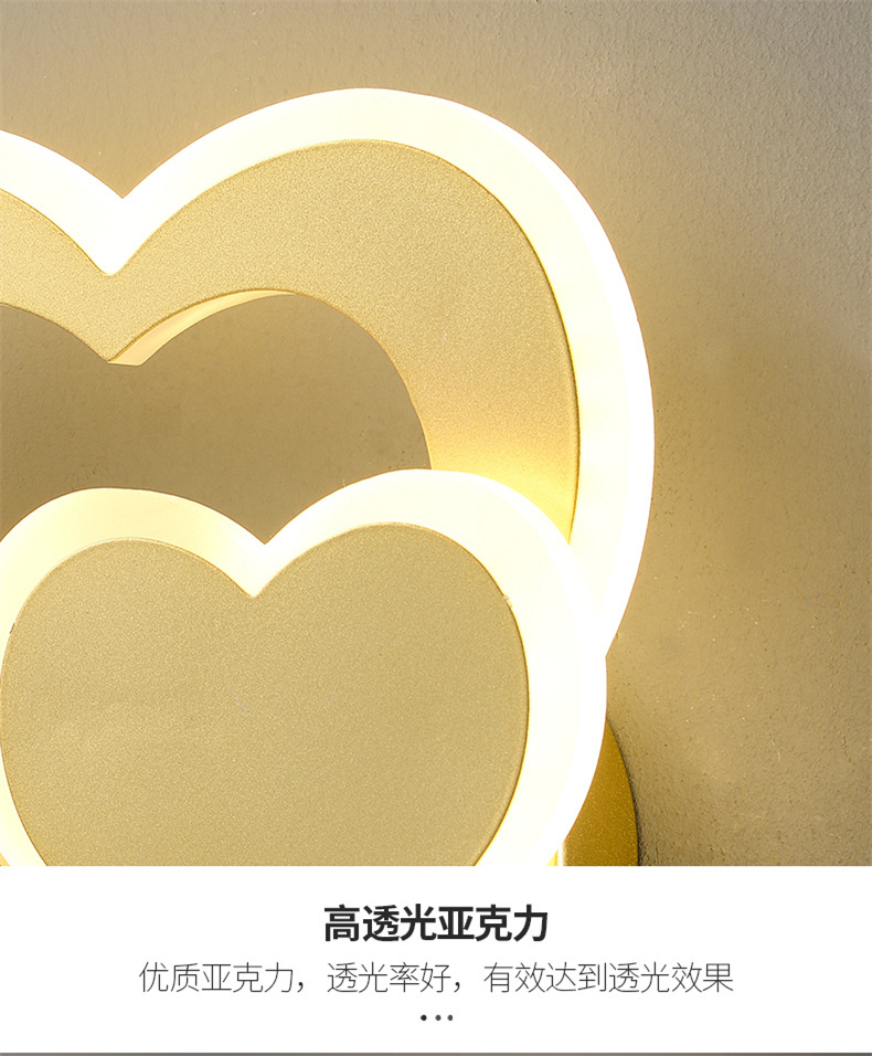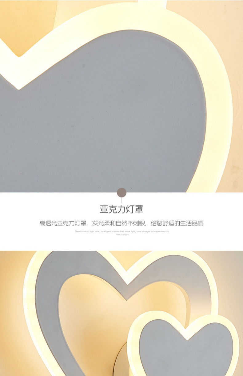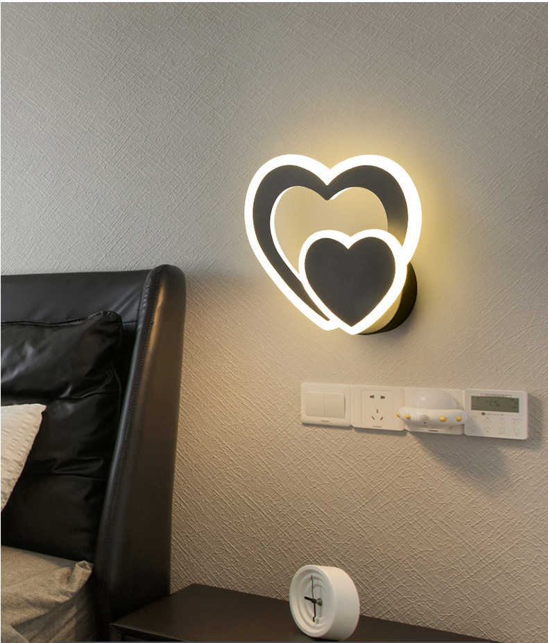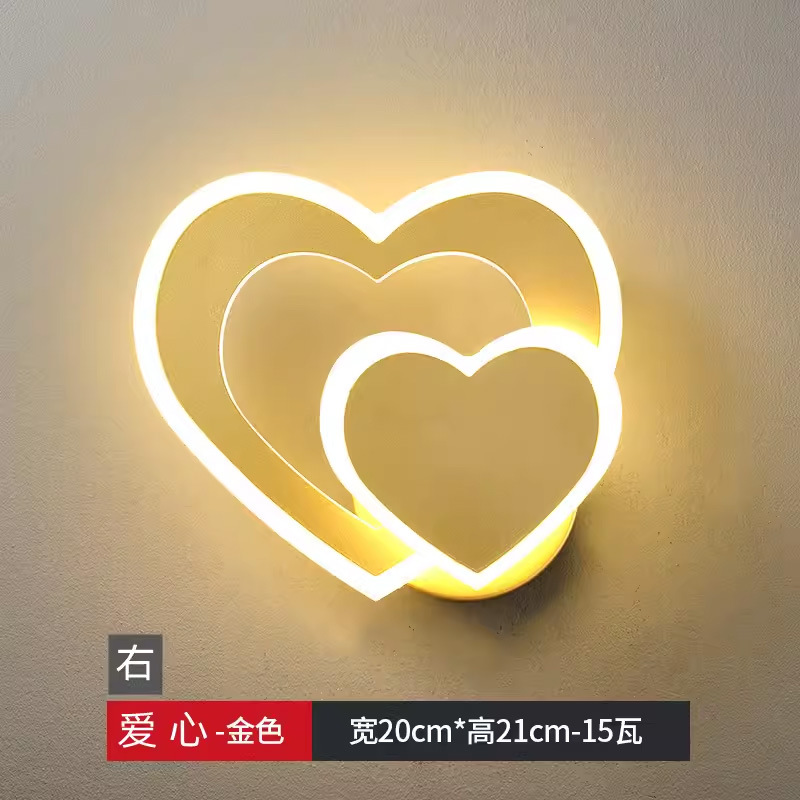 하트 모양의 벽 램프 침실 머리맡 램프 소녀 인터넷 연예인 따뜻한 계단 발코니 통로 미니멀리스트 크리 에이 티브 거실 TV 배경