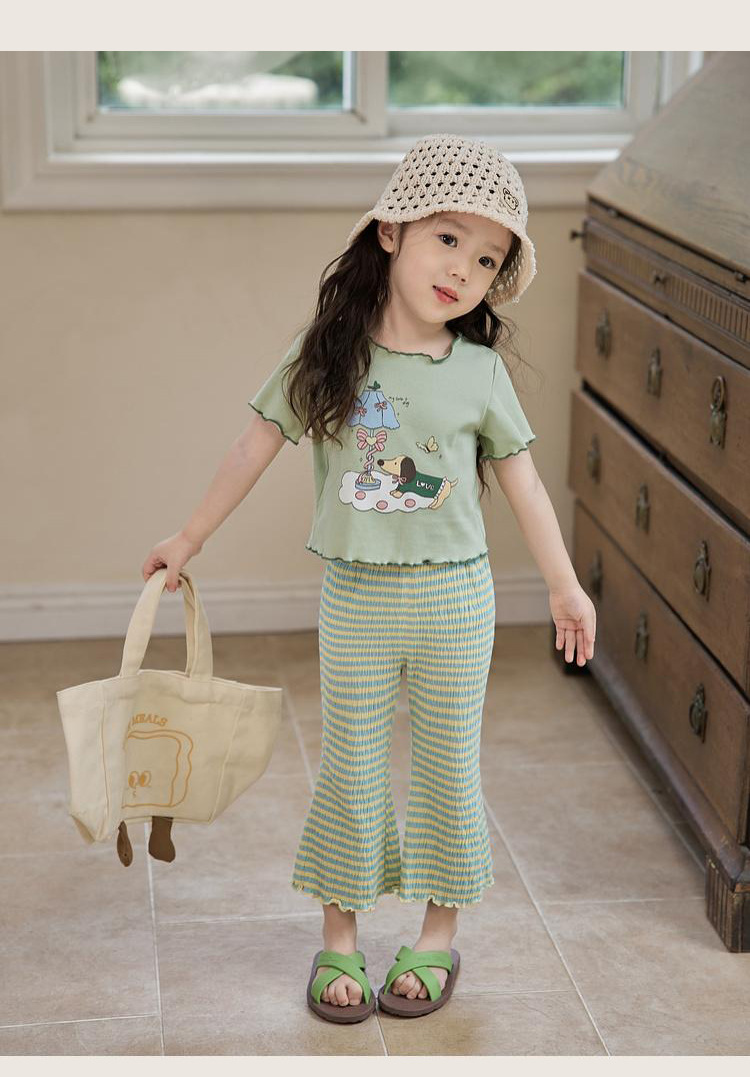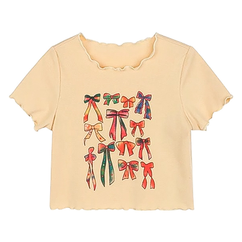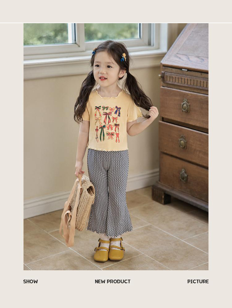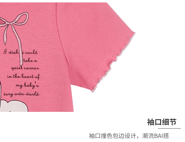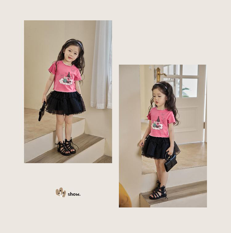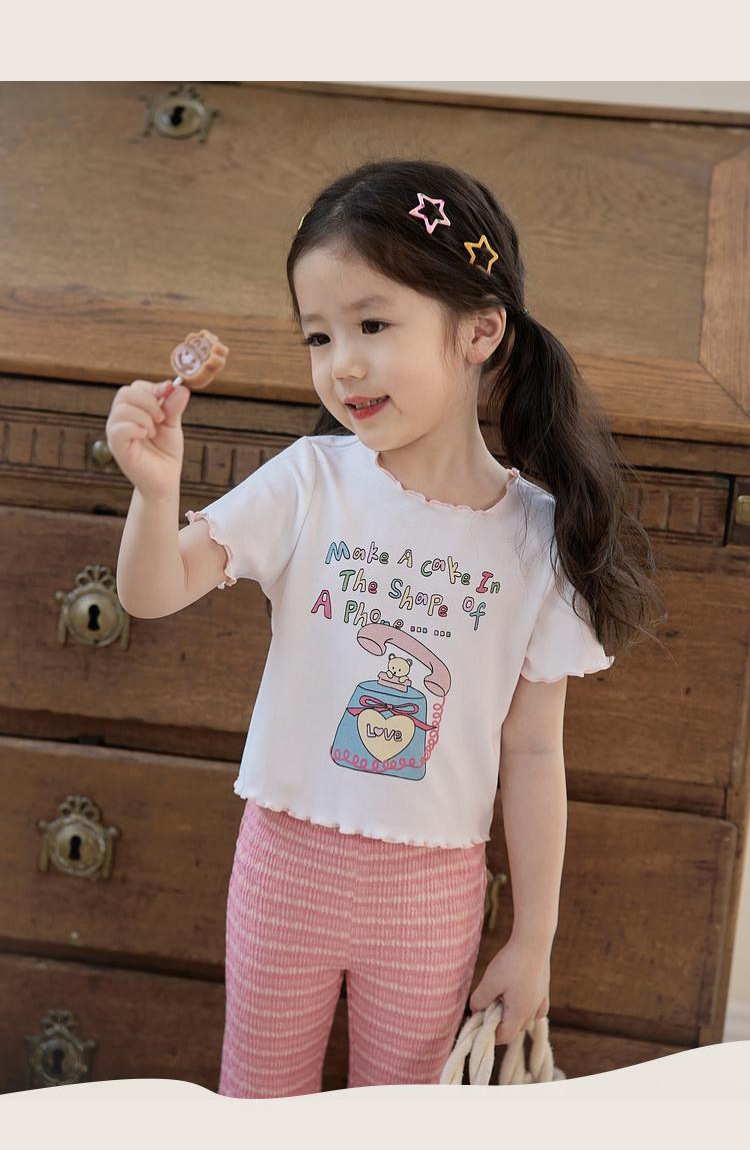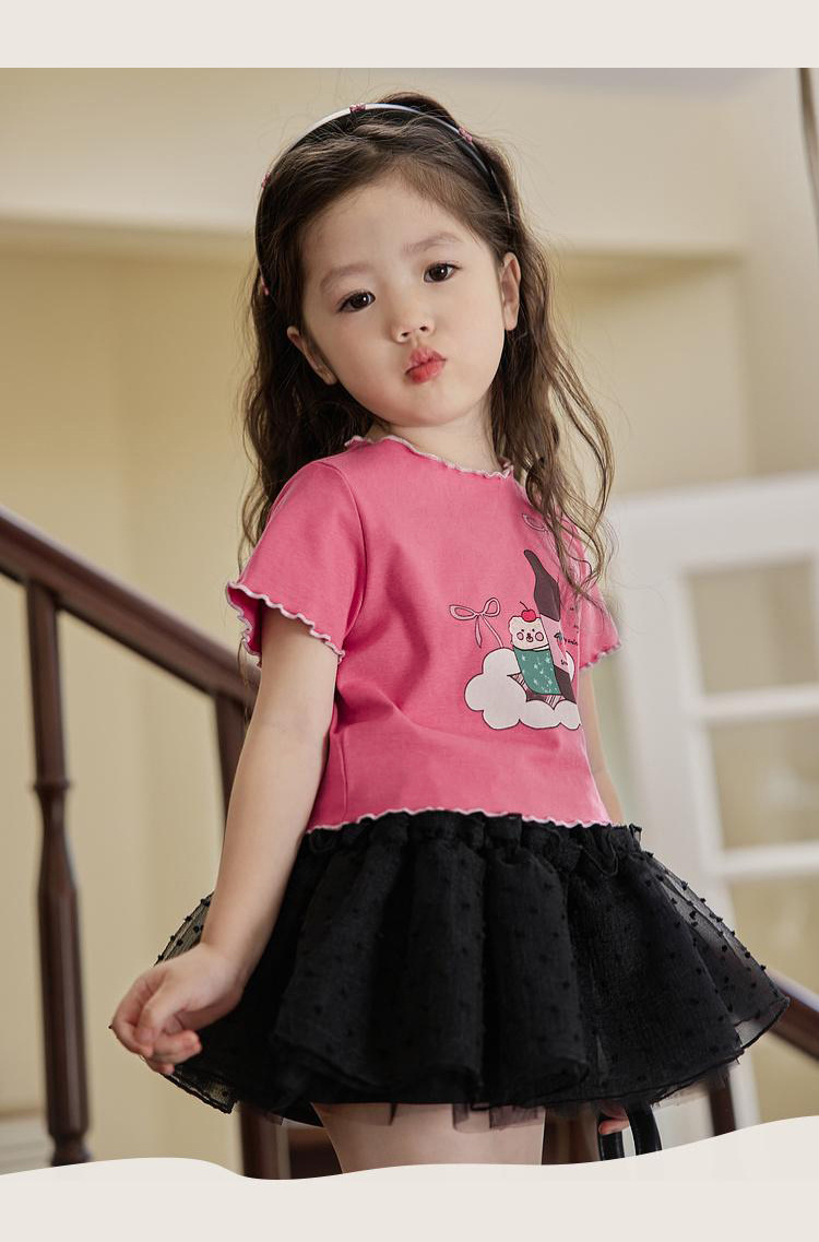 아기 소녀의 귀 테두리 티셔츠 소녀의 반팔 최고 서양 스타일 2024 새로운 도착 유행 만화 인쇄 반팔베이스 셔츠스토어 가기