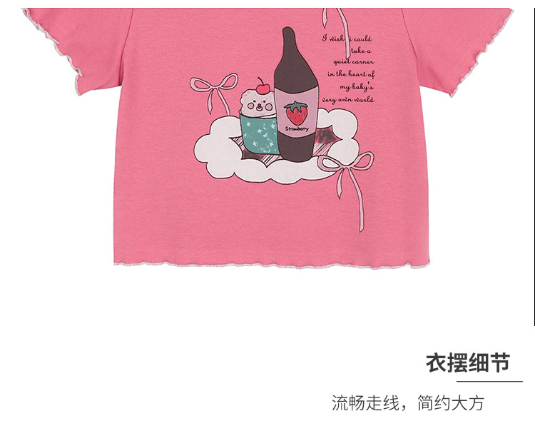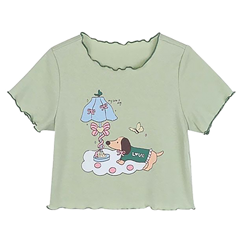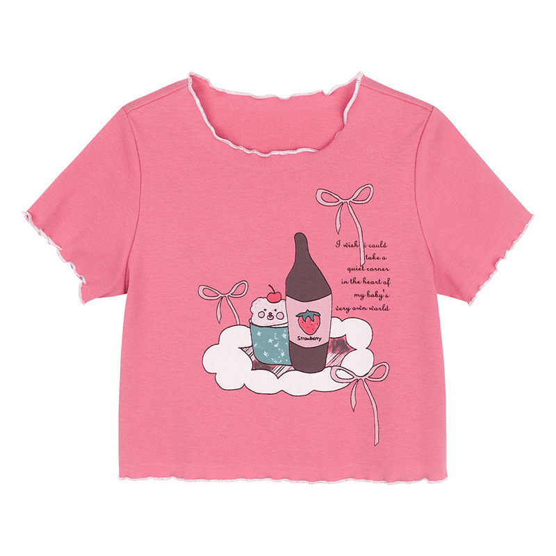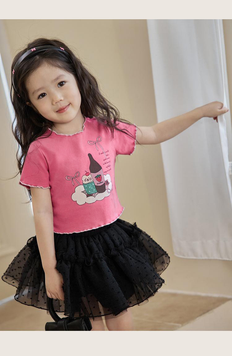 아기 소녀의 귀 테두리 티셔츠 소녀의 반팔 최고 서양 스타일 2024 새로운 도착 유행 만화 인쇄 반팔베이스 셔츠
