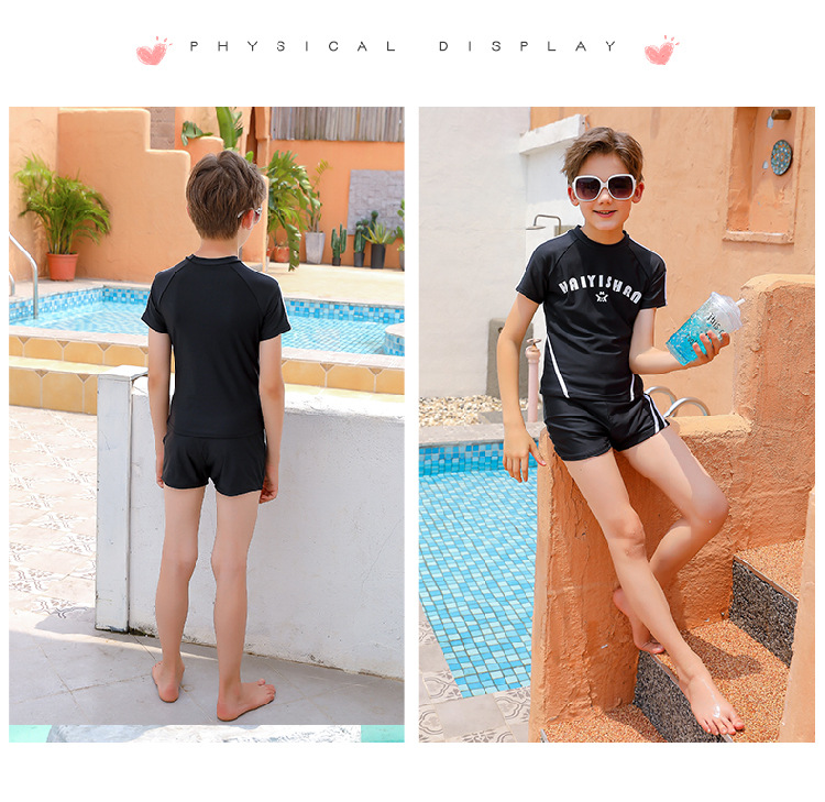 어린이 수영복 소년 분할 큰 아이 십대 소년 짧은 소매 수영복 2024 새로운 수영복 수영복 세트