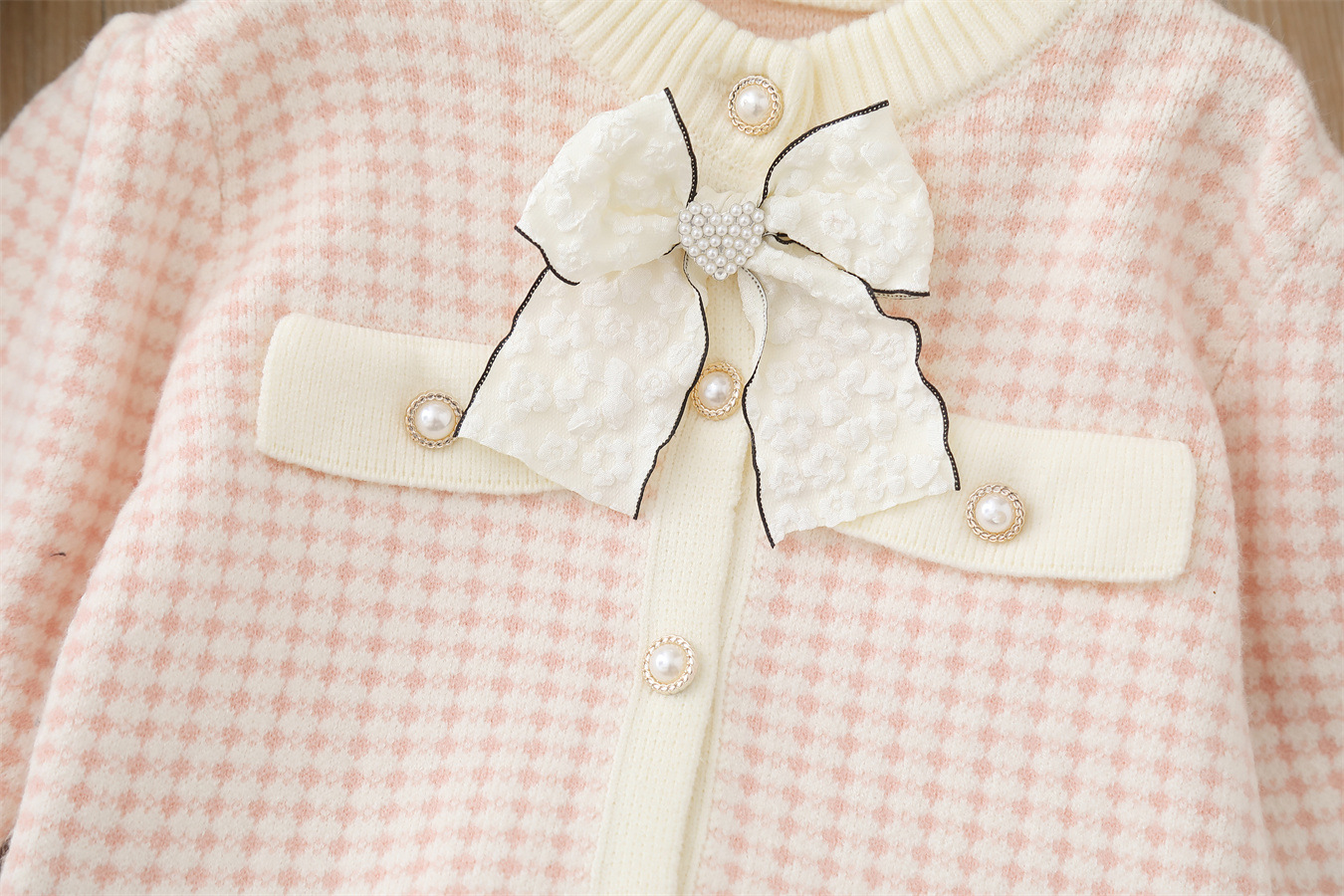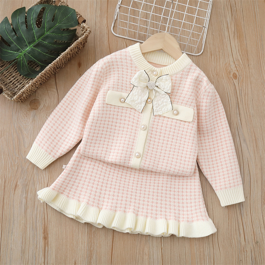 2024 가을 신상 여아 스웨터 가디건 투피스 세트, 달콤한 프렌치 스타일 세트