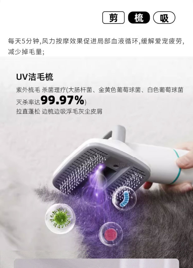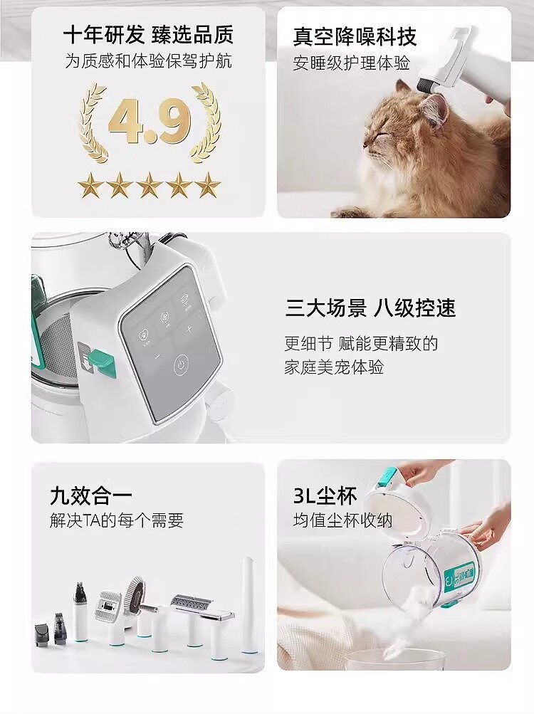 마오마마 9-in-1 다기능 털 관리기 고양이 강아지 털 제거 빗 발털 제거 전기 이발기 애완동물 진공 청소기 털 제거