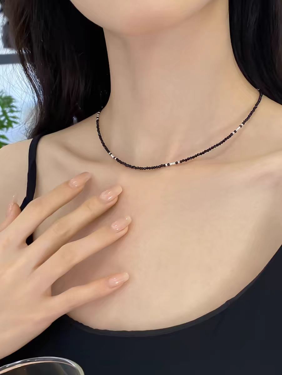 검은 구슬 목걸이 여성의 하이 엔드 디자인 센스 세련된 우아한 쌓인 쇄골 체인 초커 틈새 목 체인 트렌디