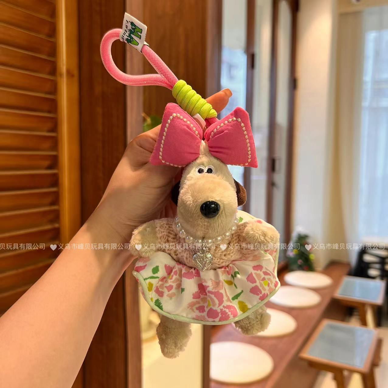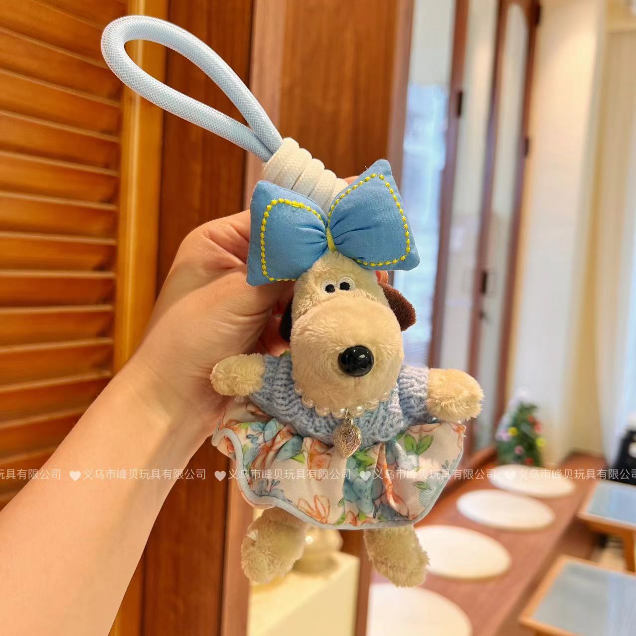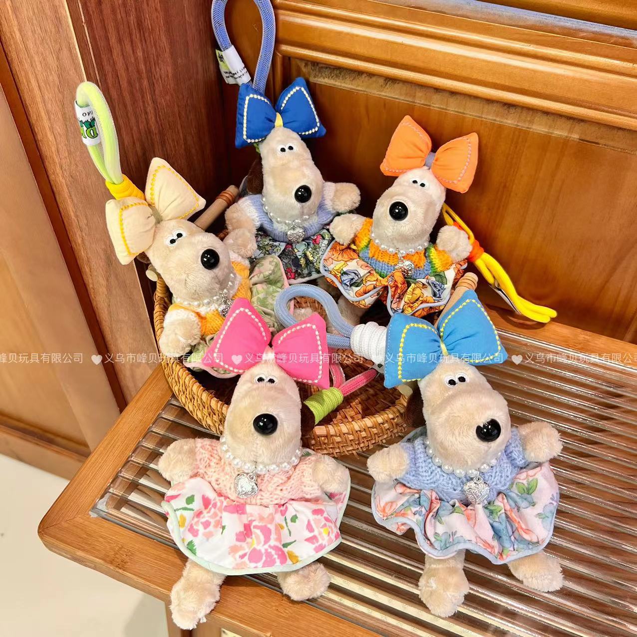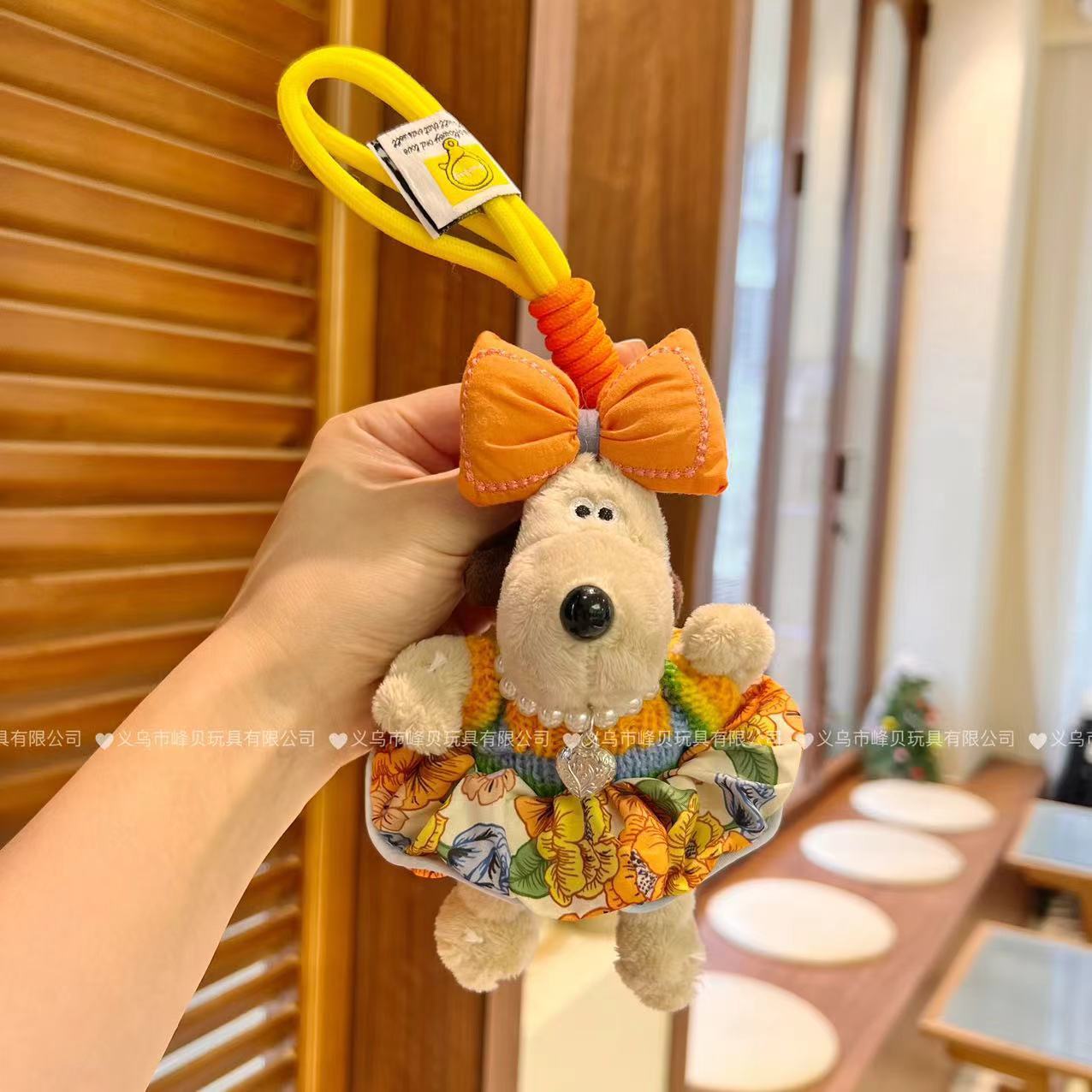 13cm Handdog 여름 Populus euphratica 꽃 원피스 활 키 체인 펜던트 휴대 전화 다시 클립 크로스 바디 로프 장식품스토어 가기