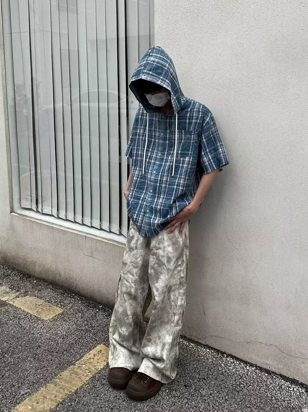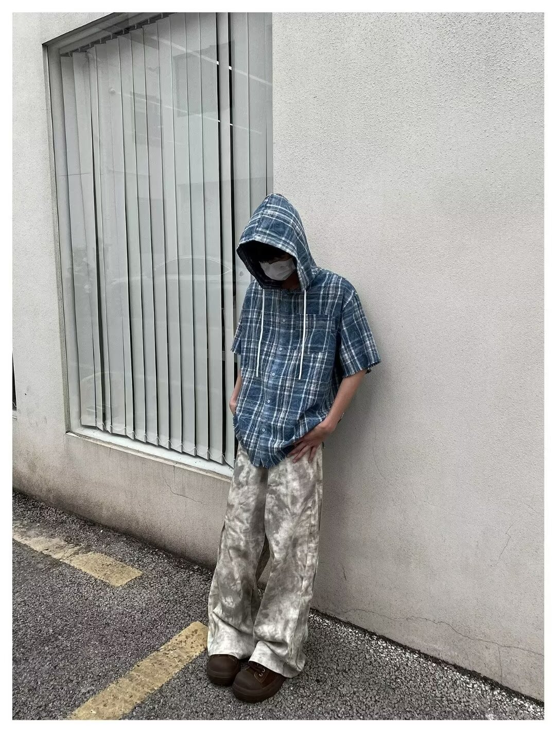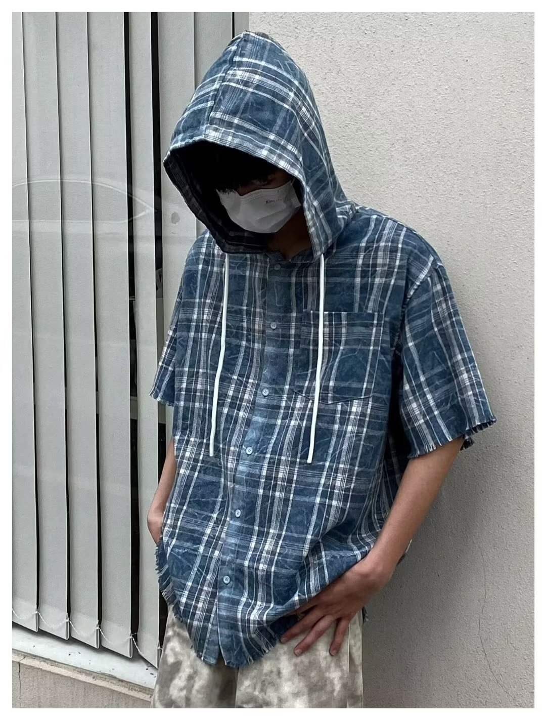 격자 무늬 반팔 셔츠 2024 남자 여름 일본 스타일 레트로 느슨한 캐주얼 셔츠 미국 스타일 하이 스트리트 패션 브랜드 재킷스토어 가기