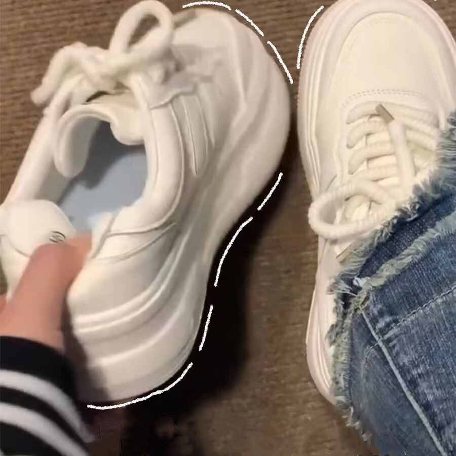 두꺼운 밑창의 흰색 여성 신발 2025 봄과 가을 새로운 다용도 신발 틈새 학생 캐주얼 높이 증가 빵 신발스토어 가기