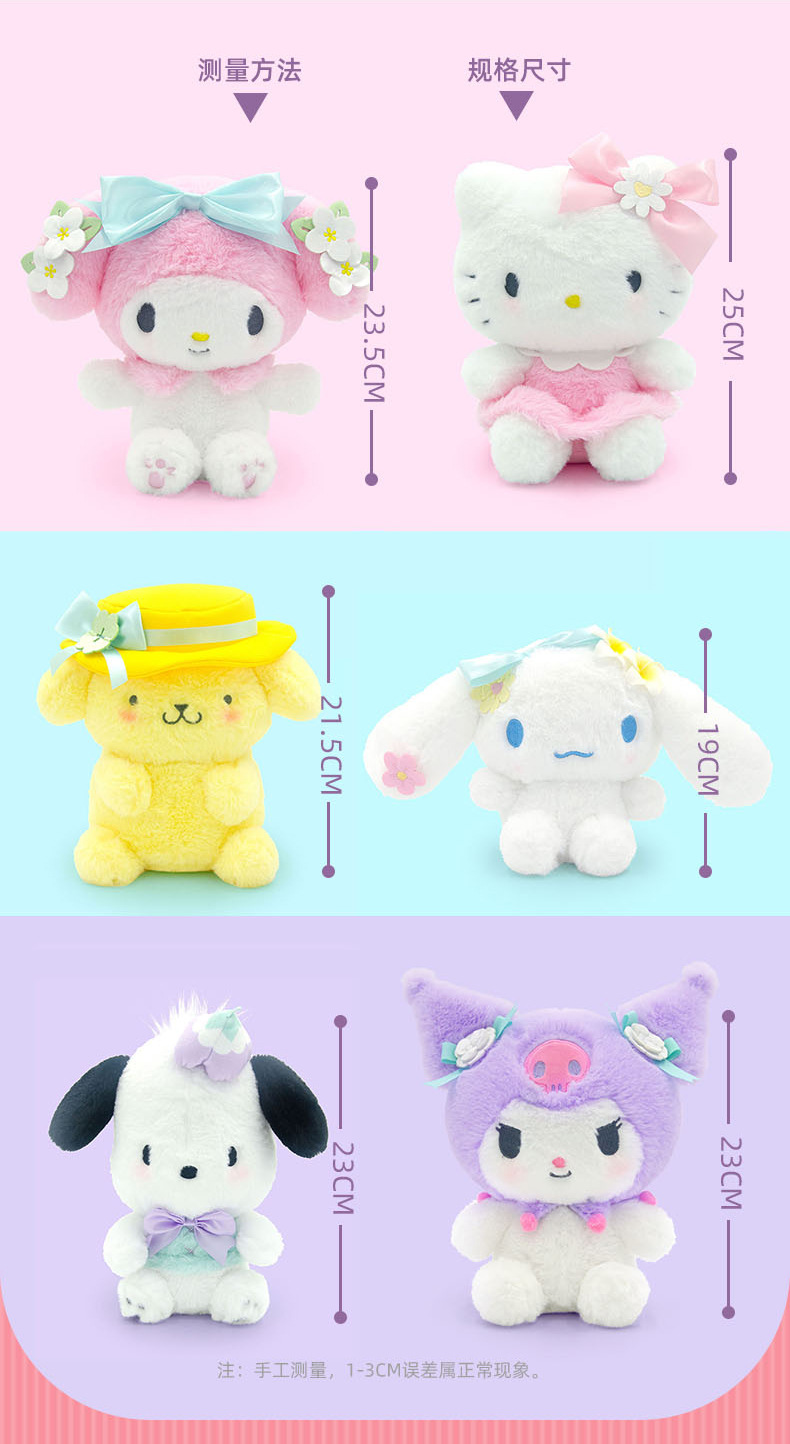 정품 산리오 꽃 콜로 미 인형 메를로 키티 푸딩 개 파차 인형 봉제 장난감