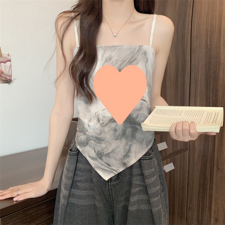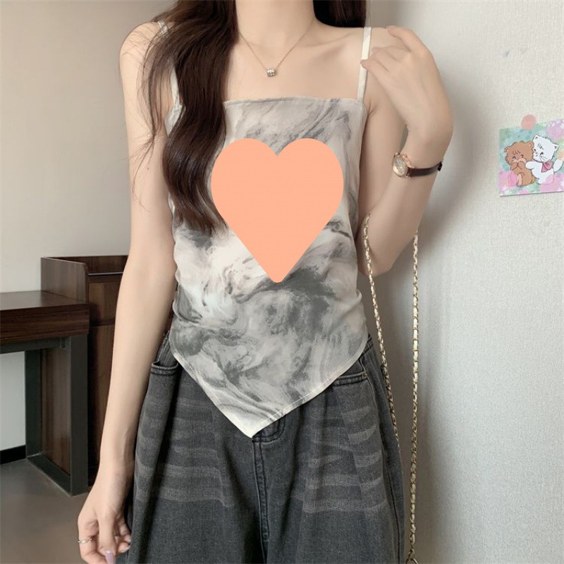 잉크 페인팅 타이-다이 카미 솔 여성 내부 여름 디자인 센스 틈새 스파이스 걸스, 불규칙한 민소매 쇼트 탑 착용