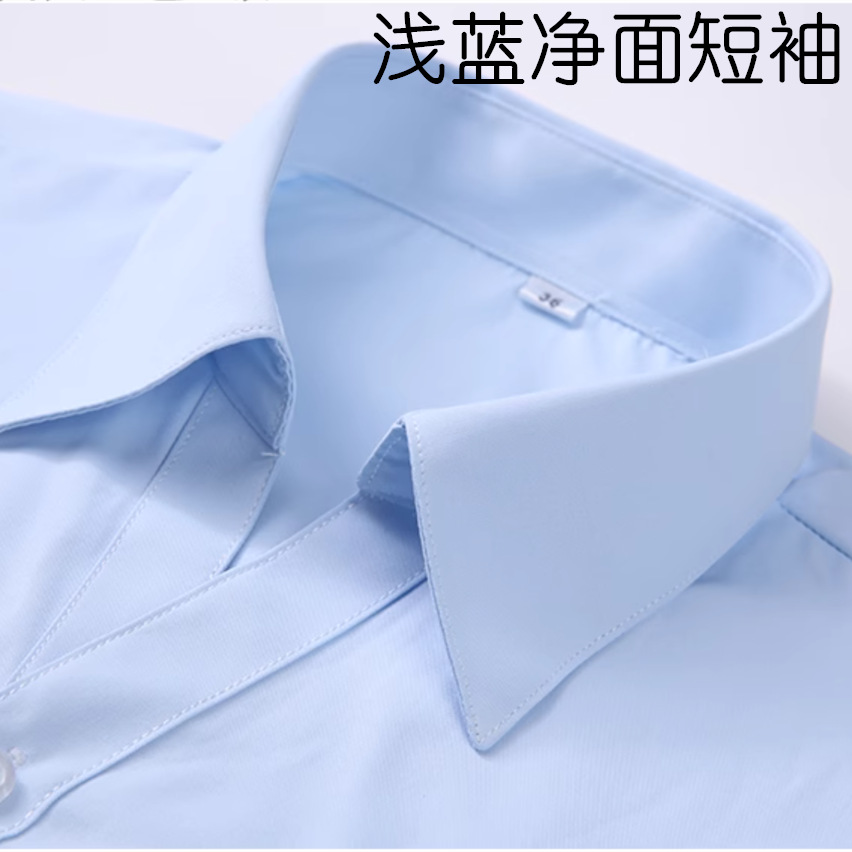 • 여성-반팔/하이 퀄리티 블루 트윌 V 넥 (라이트 블루)