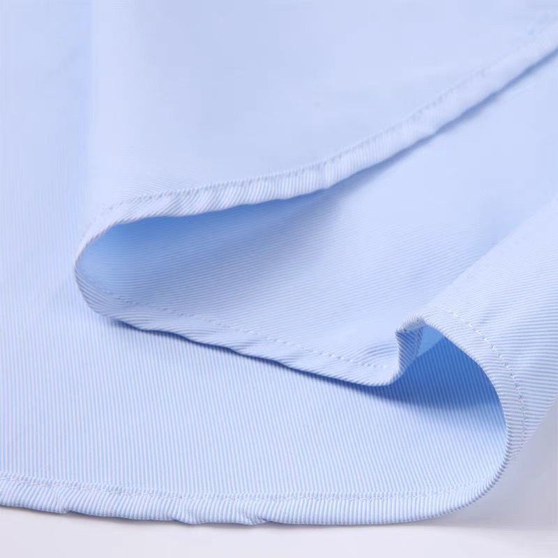 봄과 여름 여성 라이트 블루 비스듬한 다크 스트라이프 V 넥 셔츠 여성용 셔츠 전문 원피스 작업복 고급 면화 주름 방지