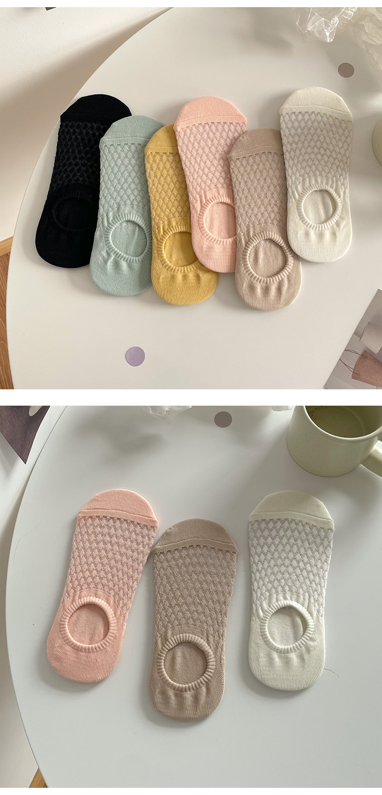 양말 여성의 봄과 여름 땀 흡수 통기성 단색 중공 메쉬 양말 미끄럼 실리콘 비 뒤꿈치 얕은 입 보이지 않는 보트 양말스토어 가기