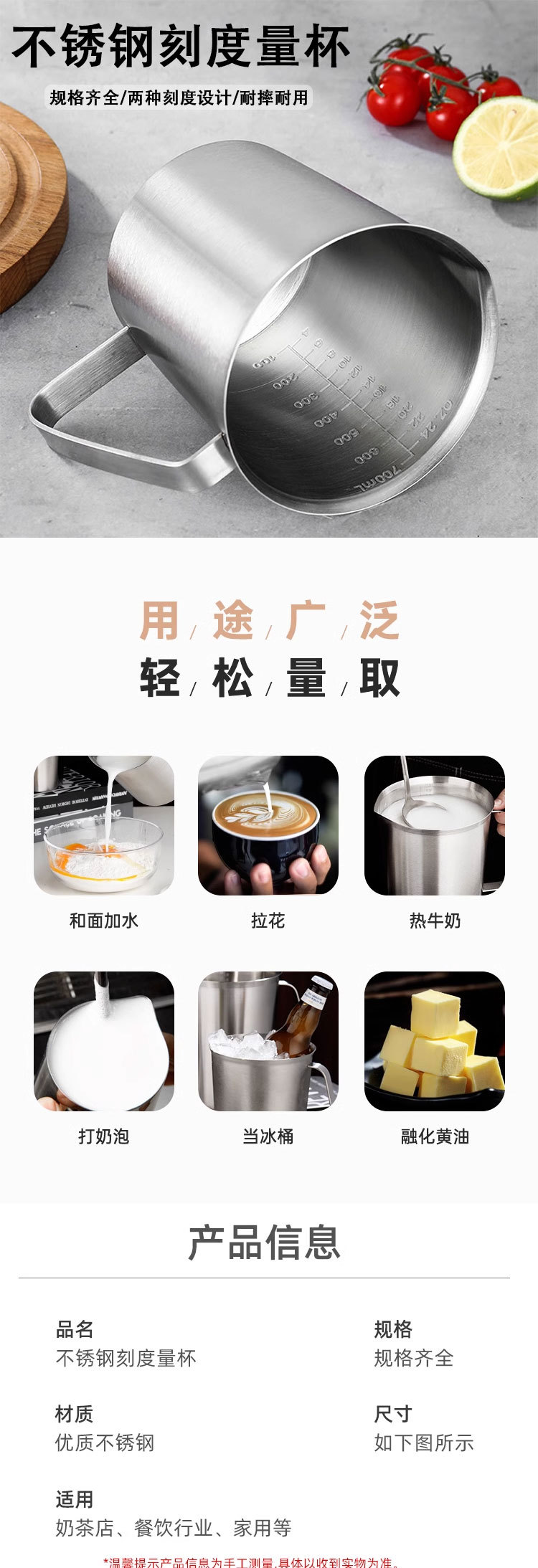 스테인레스 스틸 측정 컵 뚜껑 대용량 실험실 측정 컵 밀크 티 커피 숍 베이킹 스케일 컵