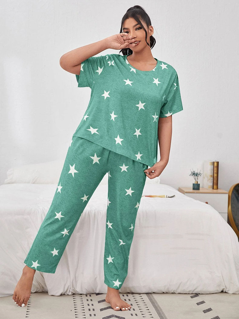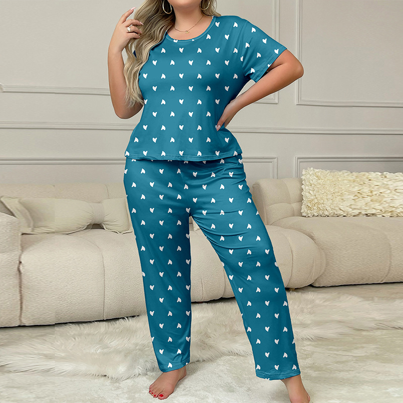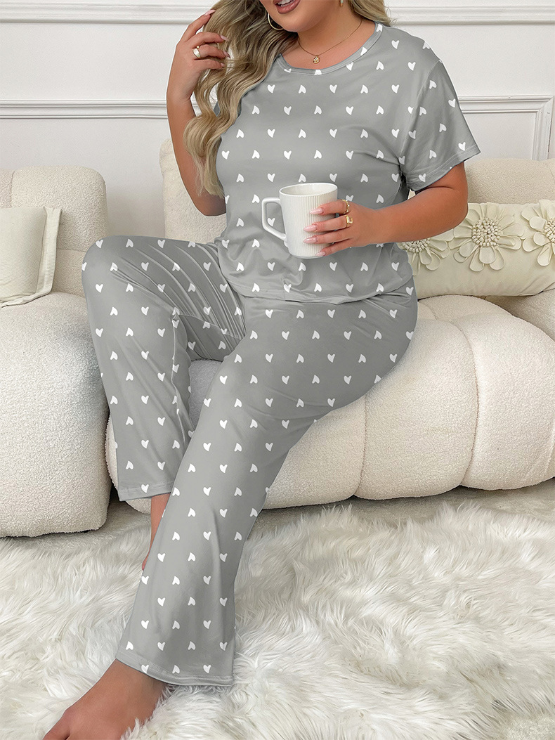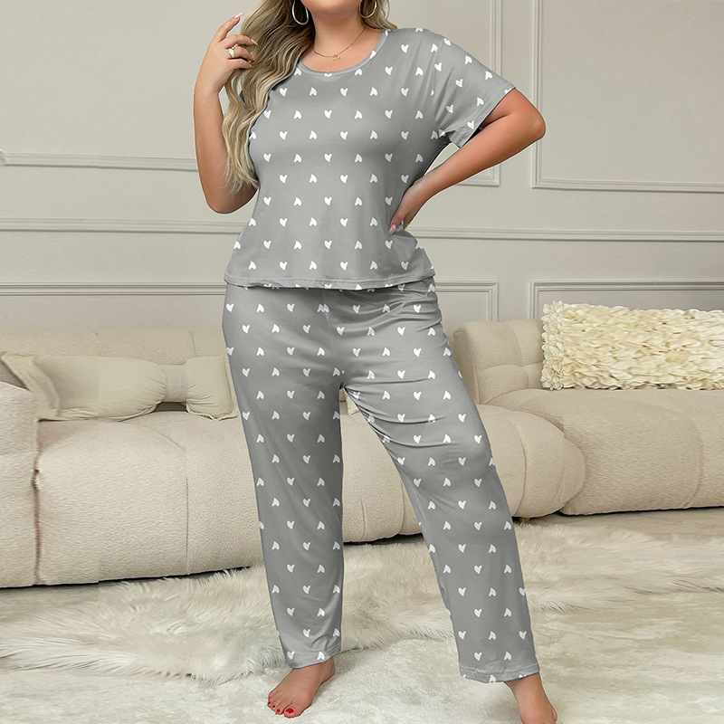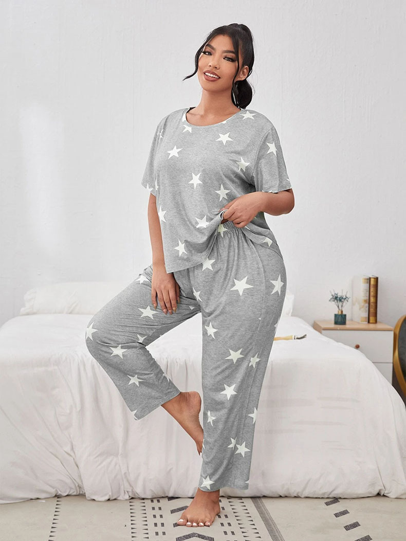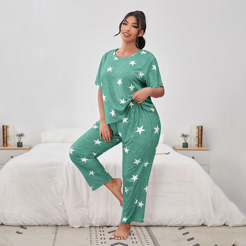 유럽과 미국의 가을과 겨울 새로운 캐주얼 홈웨어 반팔 바지 유럽과 미국의 스타일 스타 전체 인쇄 된 파자마 여성 국경