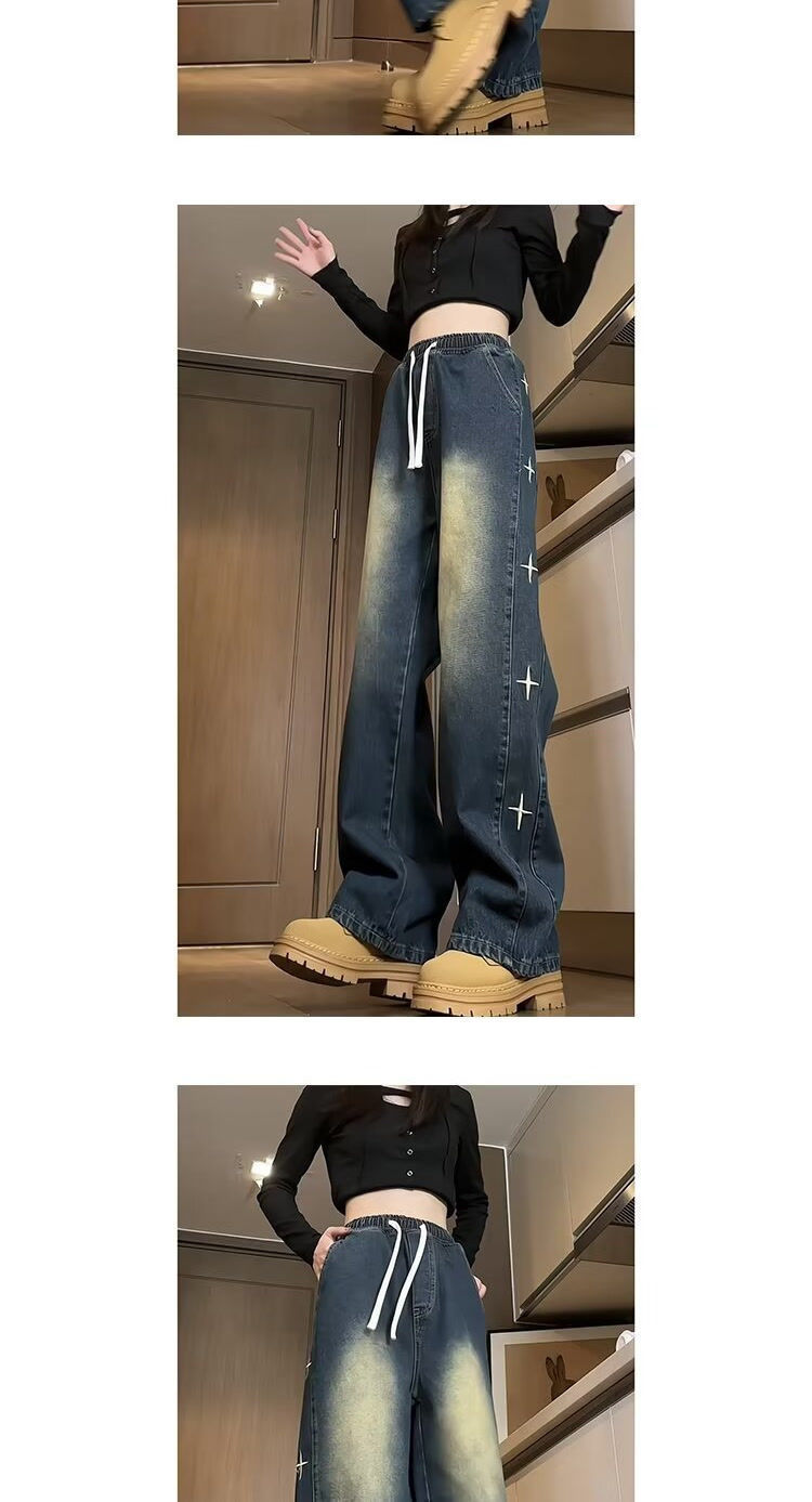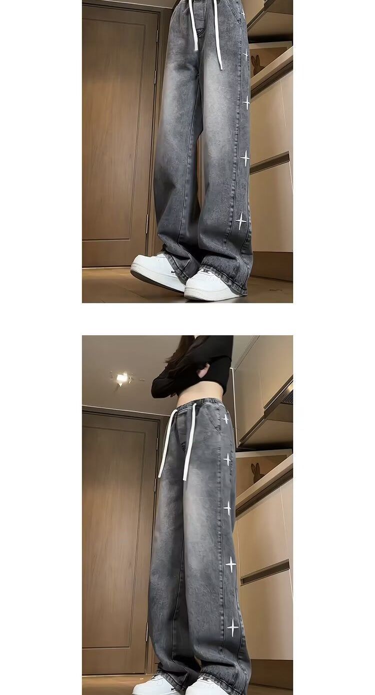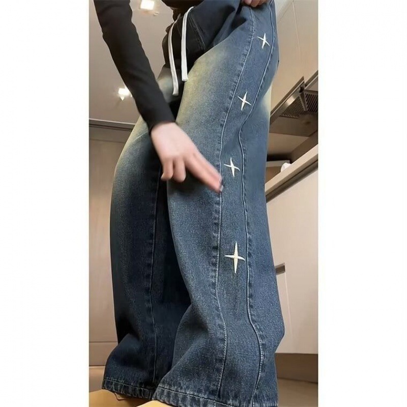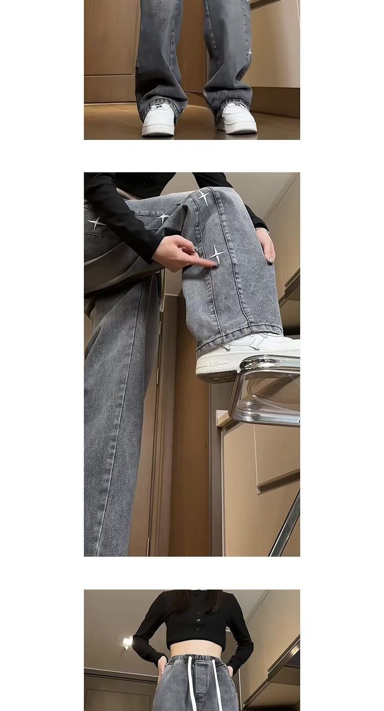 스타 바지 남자의 봄과 가을 2024 새로운 패션 브랜드 스트레이트 느슨한 넓은 다리 트렌디 레트로 데님 바지스토어 가기