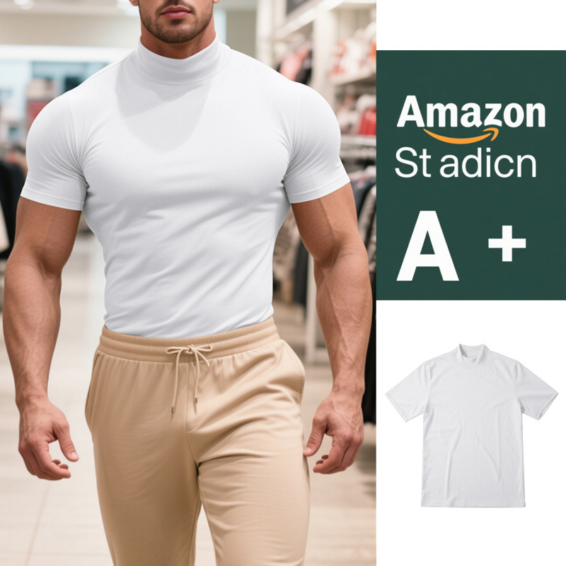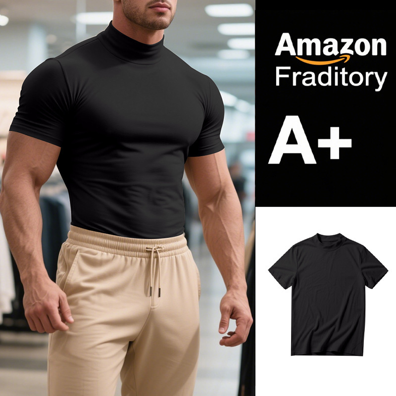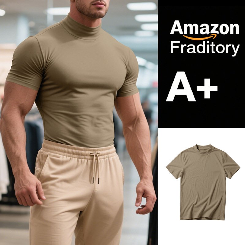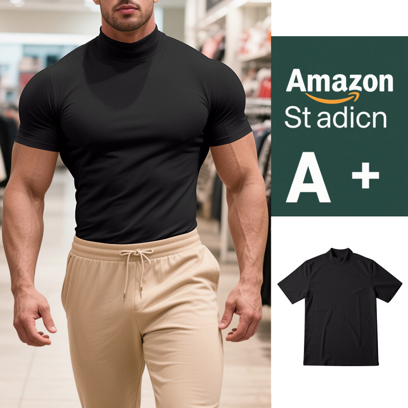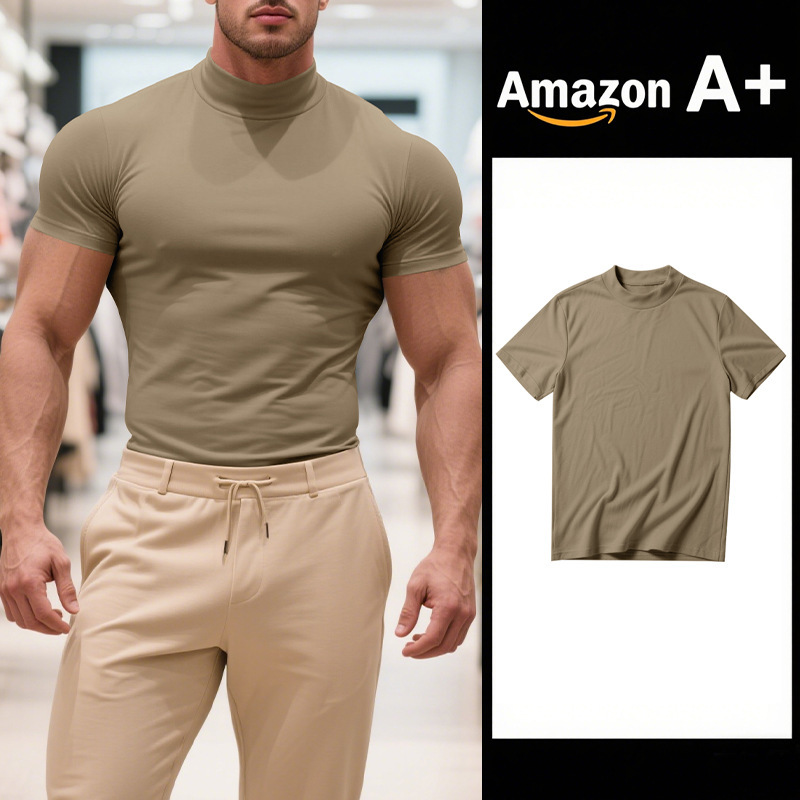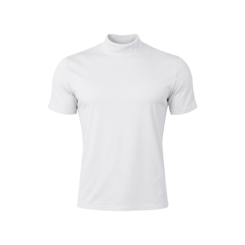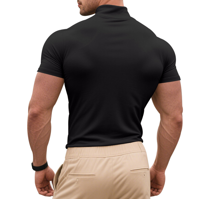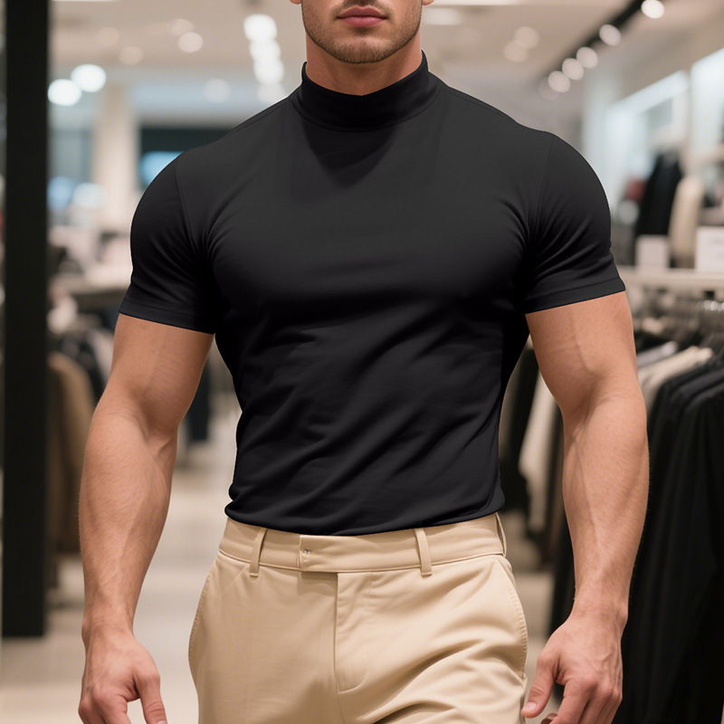 국경 간 AliExpress 여름 새로운 남성 캐주얼 티셔츠 유럽과 미국 패션 하프 하이 넥 슬림 솔리드 컬러베이스 셔츠 트렌디스토어 가기