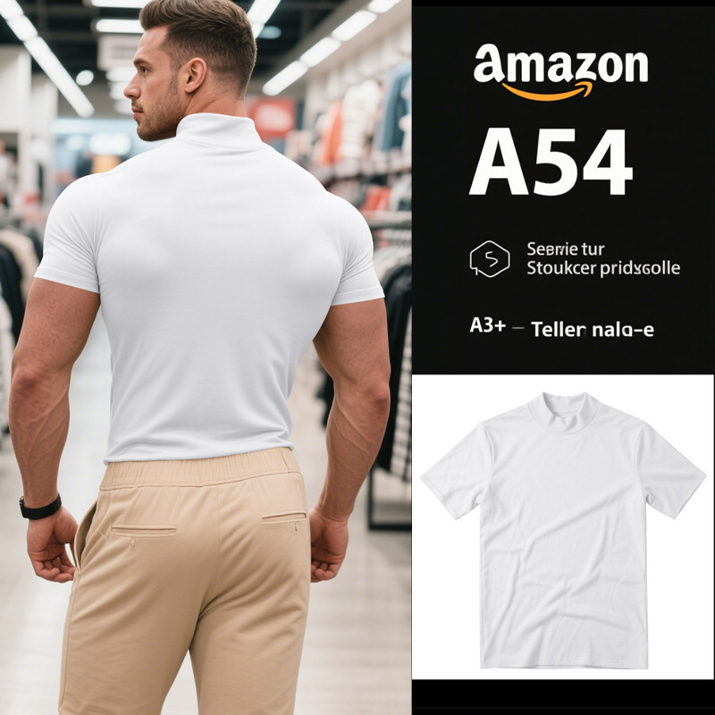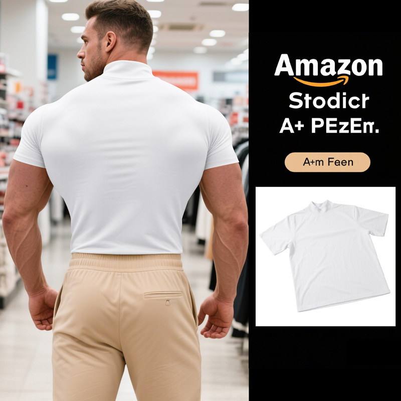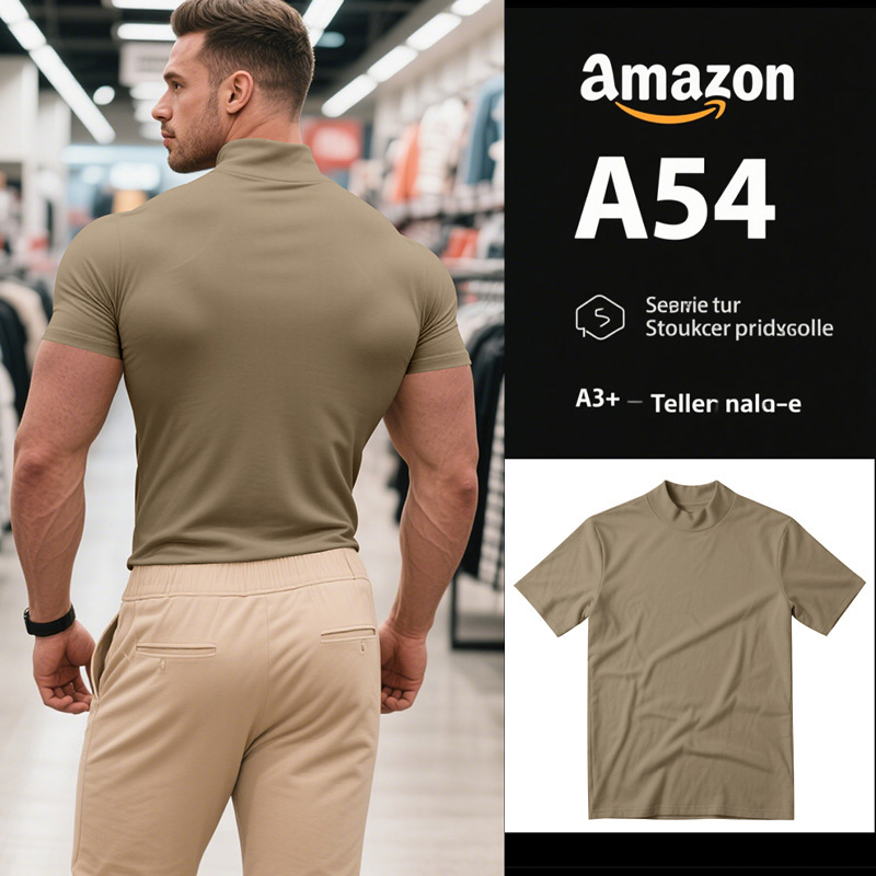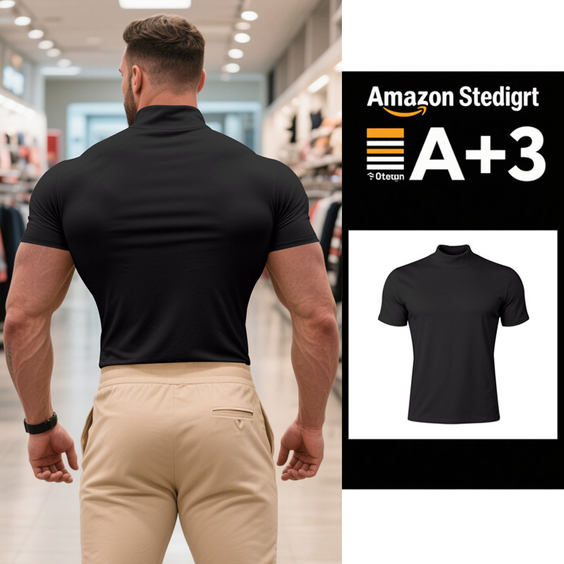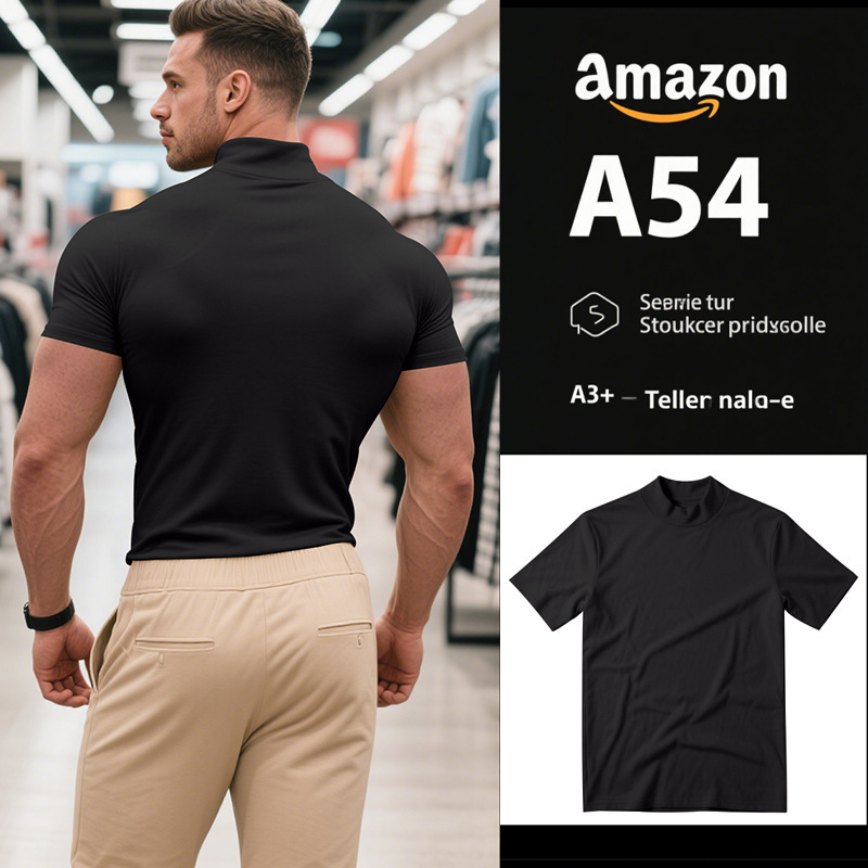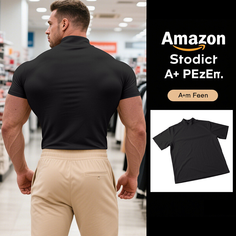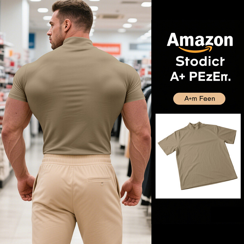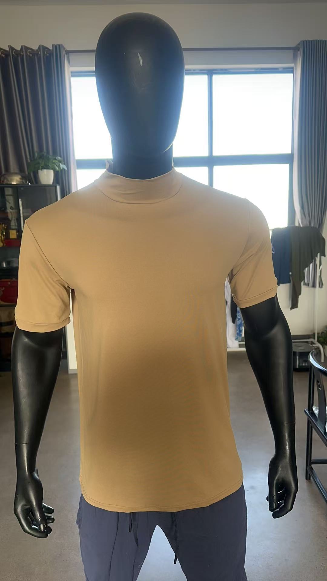 국경 간 AliExpress 여름 새로운 남성 캐주얼 티셔츠 유럽과 미국 패션 하프 하이 넥 슬림 솔리드 컬러베이스 셔츠 트렌디스토어 가기
