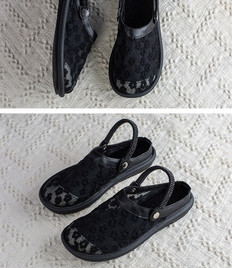 2024 봄과 여름 달콤한 중공 투복 여성용 레이스 메쉬 신발 페어리 스타일 스위트 샌들 투웨어 Baotou 하프 슬리퍼