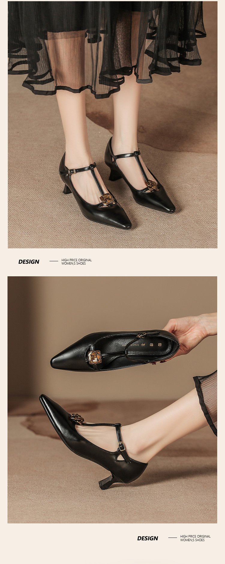 H686-2 부드러운 가죽 빈티지 하이힐 여성 원 스트랩 메리 제인 패션 싱글 레이어 신발 단색 가을 겨울 신발 여성 외주