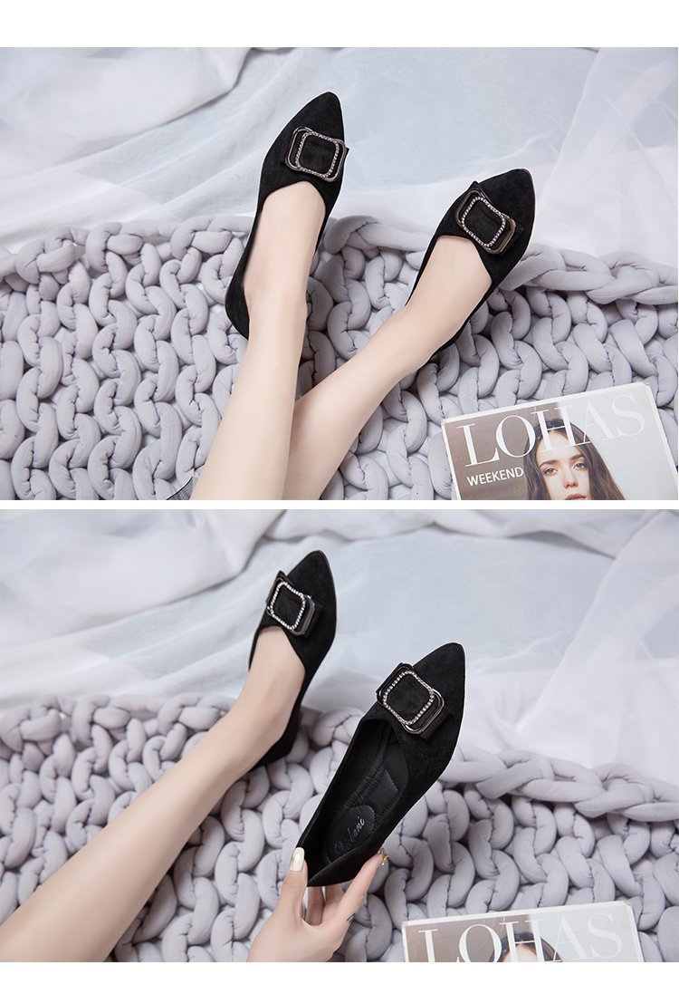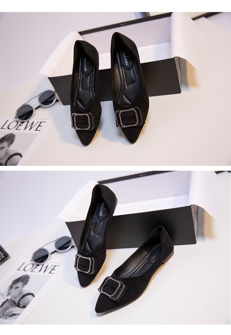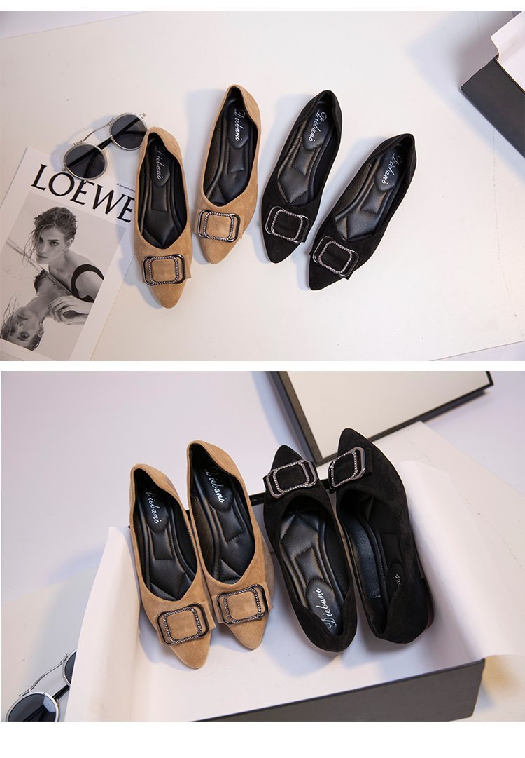 스퀘어 버클 플랫 슈즈 여성의 봄 새로운 편안한 스웨이드 얕은 입 싱글 슈즈 슬립 온 뾰족한 소프트 하단 슈즈 전문가스토어 가기
