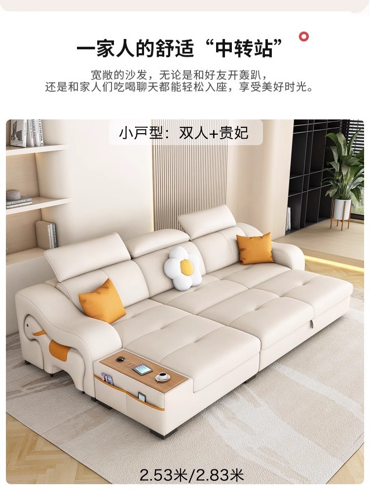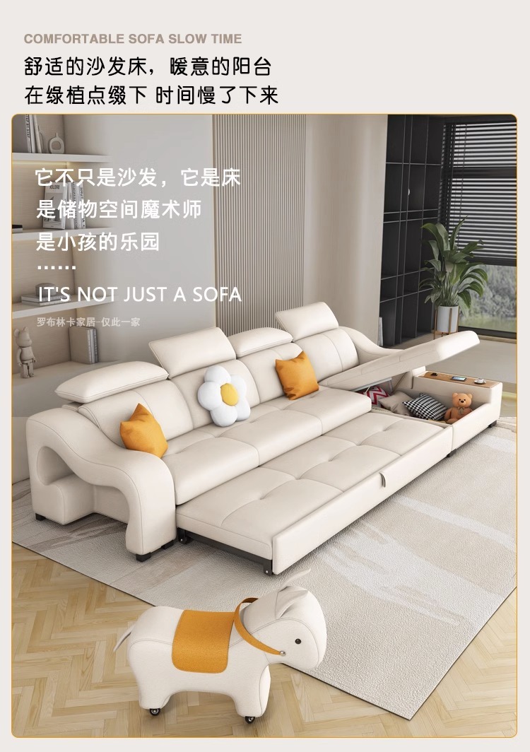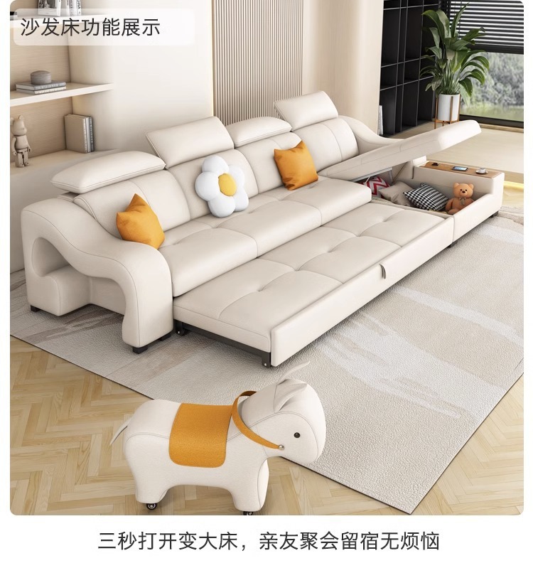 크림 스타일 현대 간단한 인터넷 연예인 소파 거실 2025 새로운 스타일 고양이 스크래치 가죽 개폐식 소파 침대스토어 가기