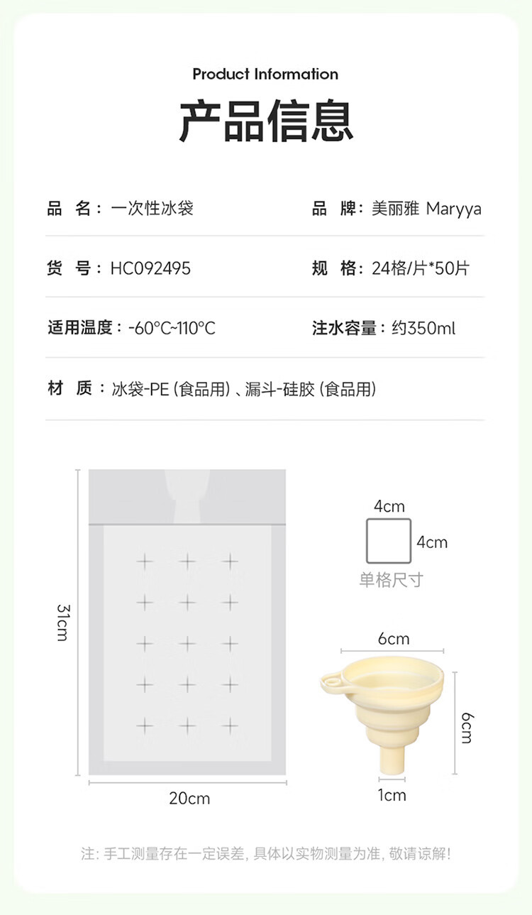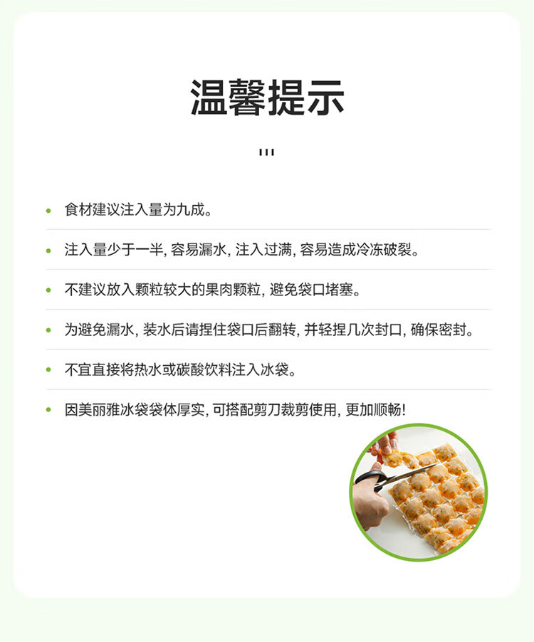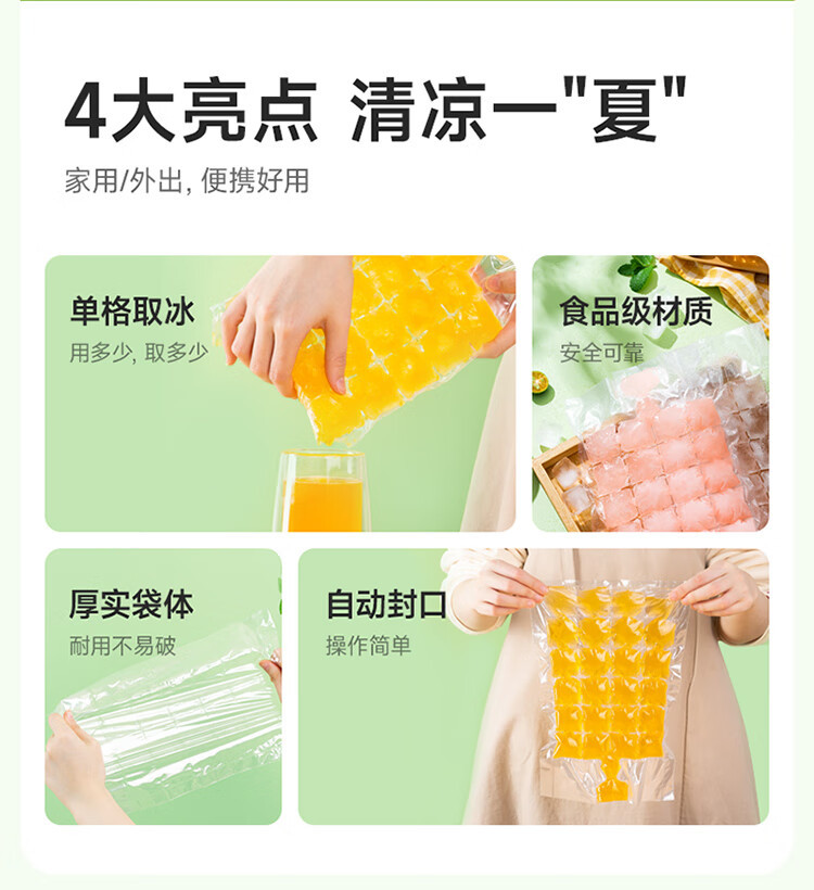 Meliya 일회용 물이 채워진 얼음 가방 식품 등급 얼음 트레이 가방 자체 밀봉 냉동 아이스 큐브 금형 아이스 가방 가정용