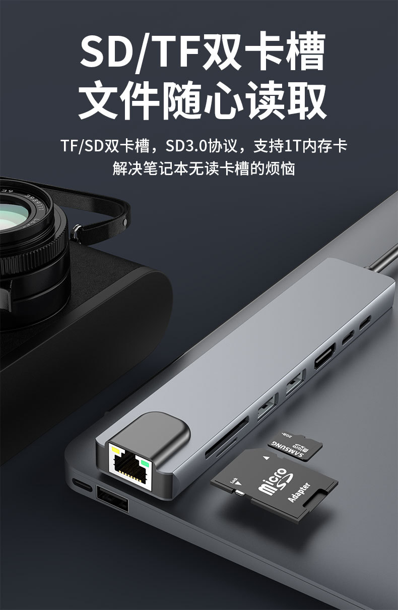 Typec to hdmi 도킹 스테이션 휴대 전화 컴퓨터 게임 기계 usb-c 8-in -1 100 메가 비트 네트워크 usb3.0 허브