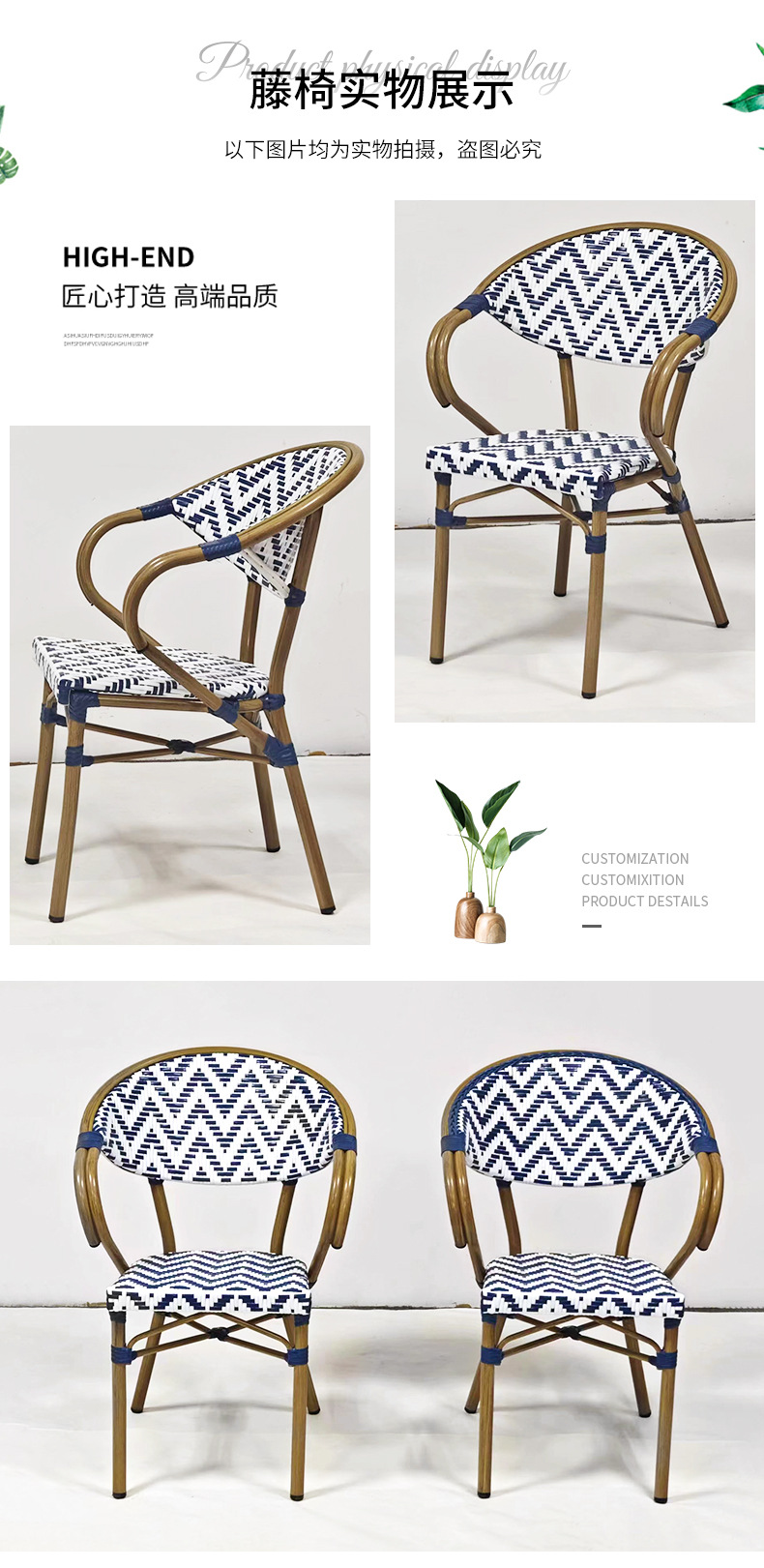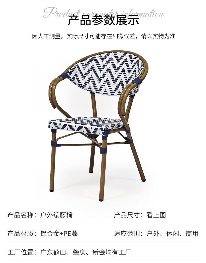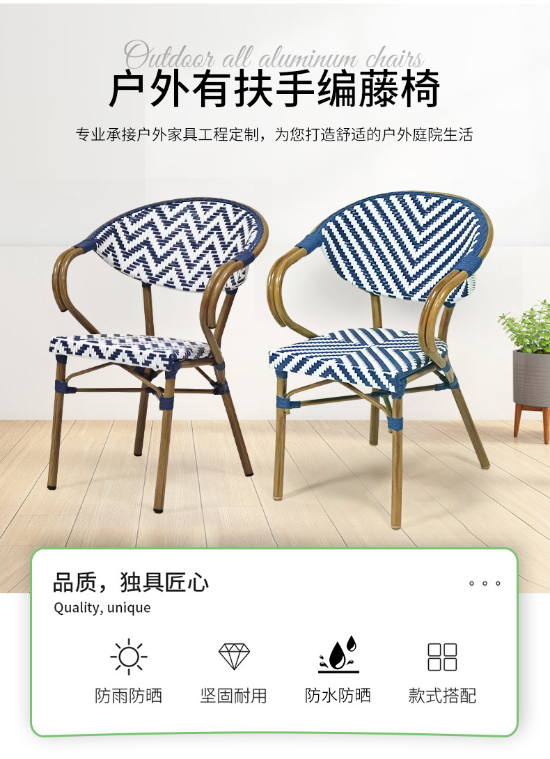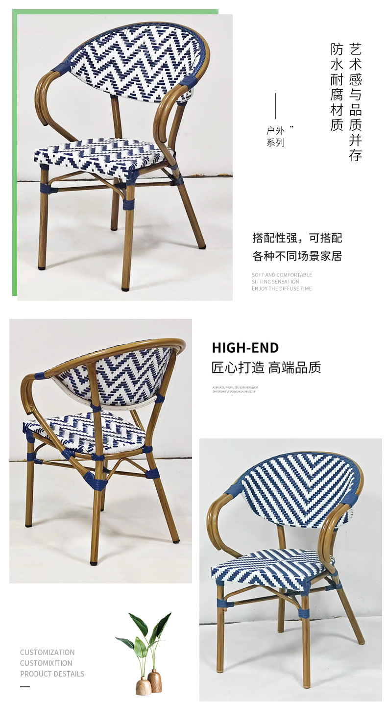 야외 안뜰 안락 의자 도매 정원 안뜰 등나무 테이블과 의자 식사 의자 카페 상업 거리 프랑스 등나무 의자