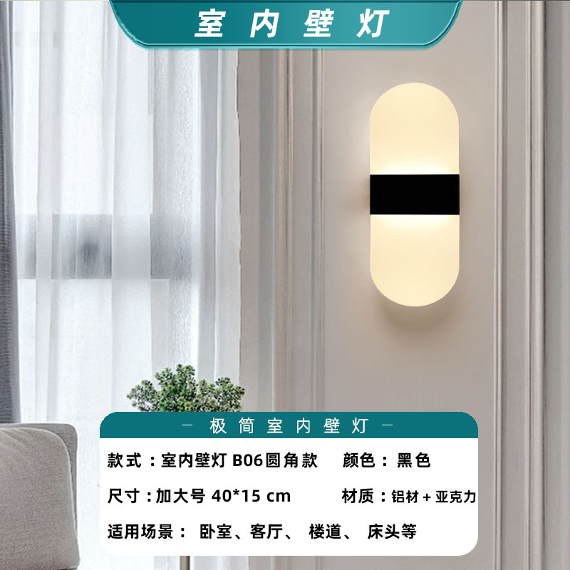 • 검정색-중형-6W-B06-둥근 모서리 모델-실내 벽 램프-기본 따뜻한 조명