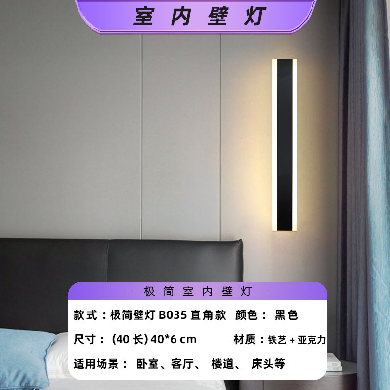 • 검정색-40 대형-15W-B035-직각 모델-실내 벽 램프-기본 따뜻한 조명