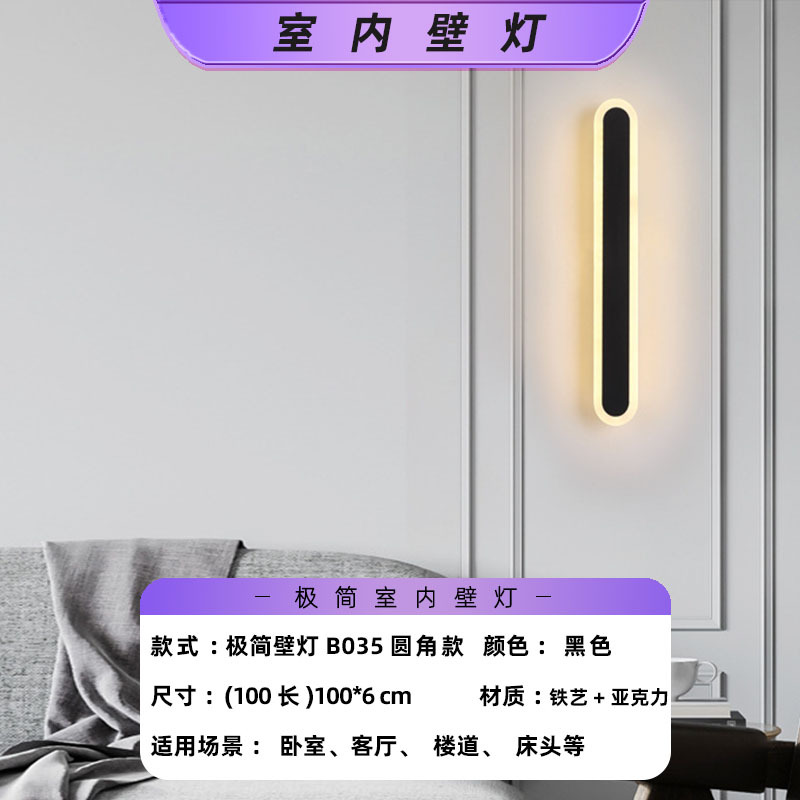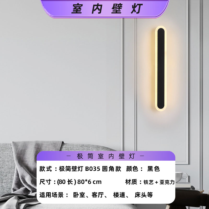 • 검정색-60 대형-24W-B035-둥근 모서리 모델-실내 벽 램프-기본 따뜻한 조명