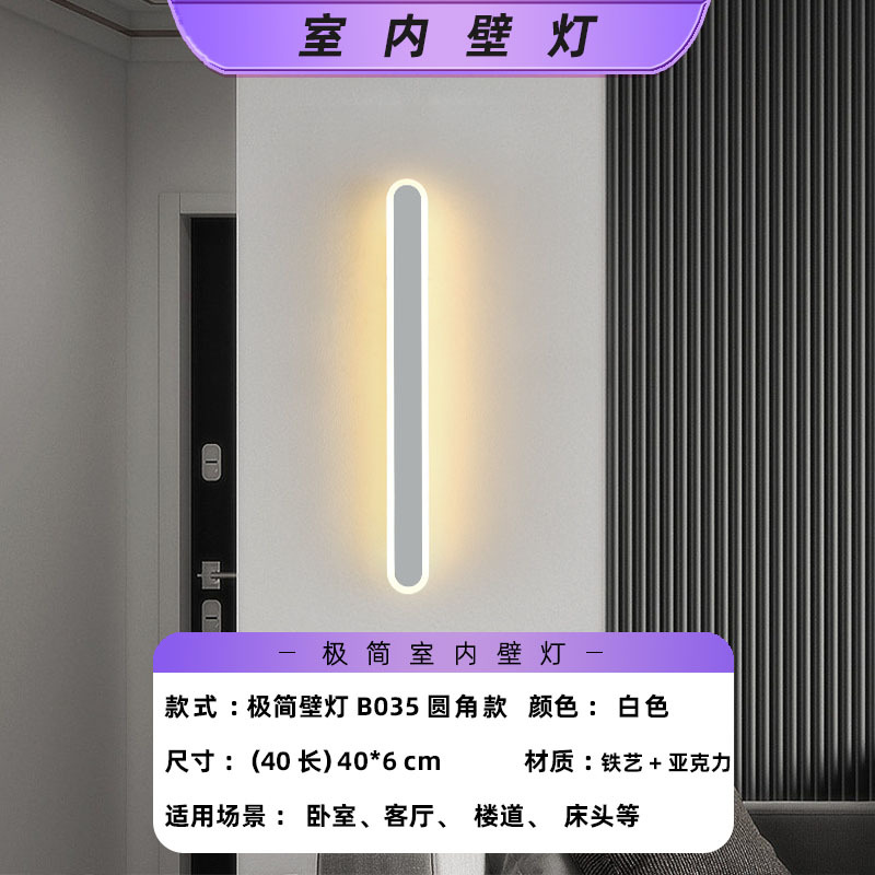 • 흰색-40 대형-15W-B035-둥근 모서리 모델-실내 벽 램프-기본 따뜻한 빛