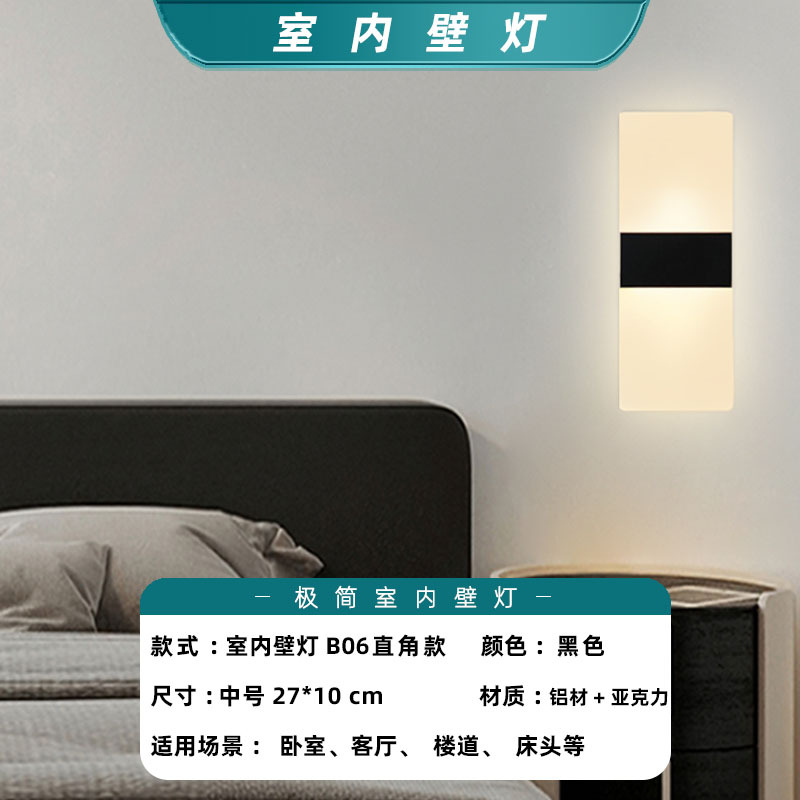 • 검정색-중형-6W-B06-직각 모델-실내 벽 램프-기본 따뜻한 조명