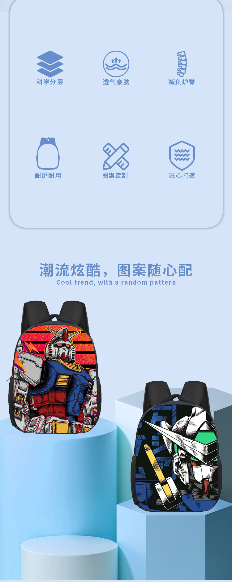 新款高达儿童书包幼儿园炫酷大容量涤纶双肩包学生黑色休闲书包批