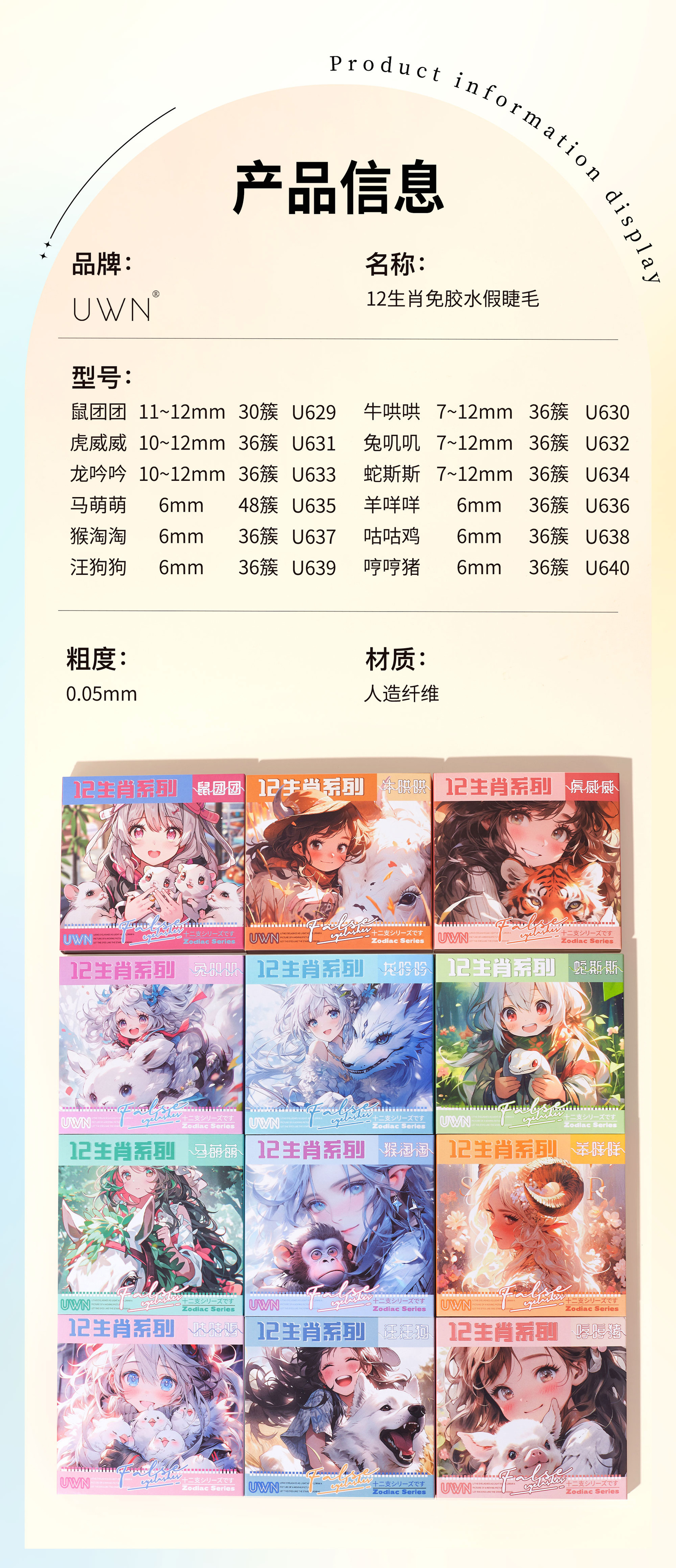 UWN 조디악 시리즈 더 낮은 속눈썹 뻐꾸기 치킨 Xi 더 낮은 속눈썹 자연 어머니 태어난 한국 여성 그룹 거짓 속눈썹스토어 가기