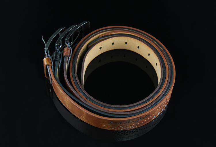 새로운 대외 무역 국경 레저 남성 벨트 골동품 핀 버클 벨트 복고풍 리벳 벨트 제조업체 재고
